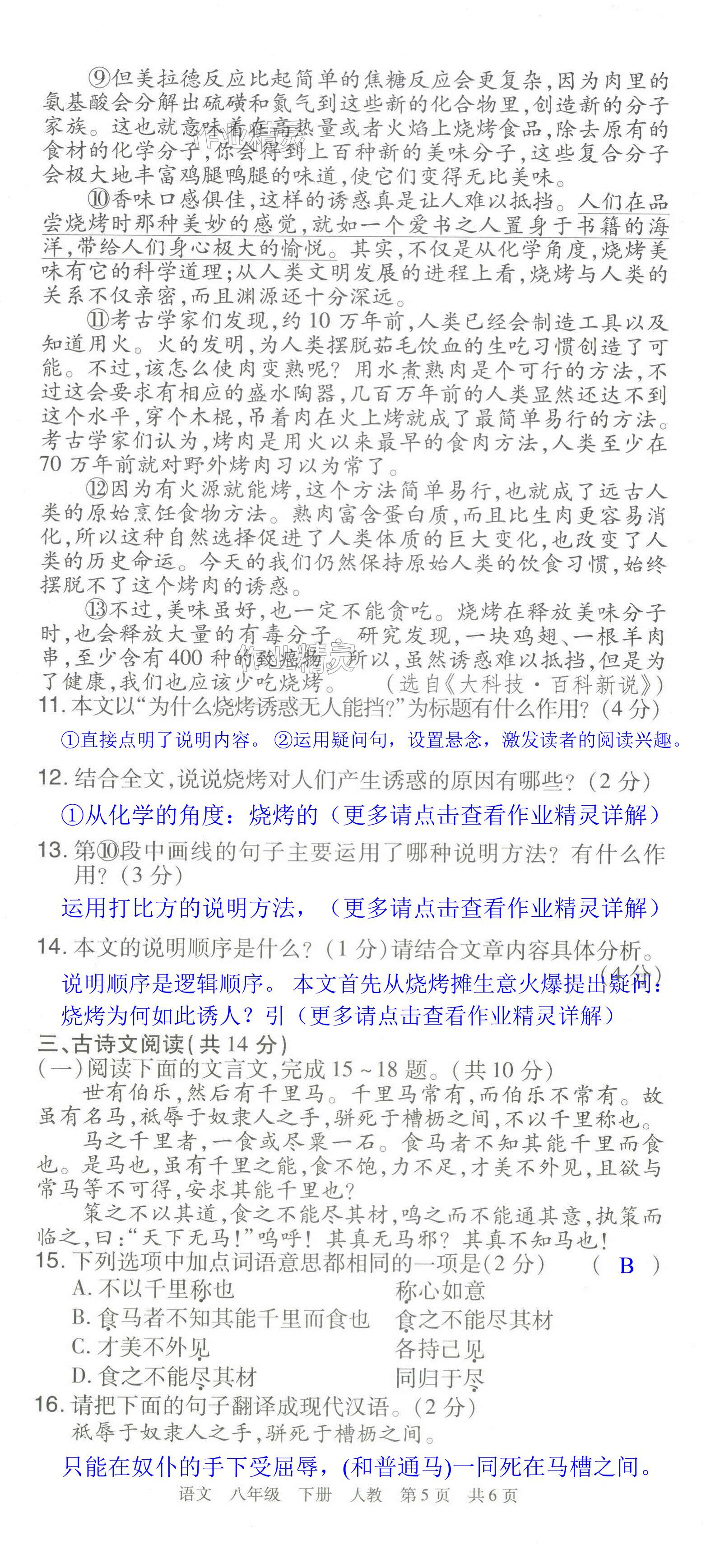 注:目前有些书本章节名称可能整理的还不是很完善,但都是按照顺序排列的,请同学们按照顺序仔细查找。练习册 2024年期末考试必刷卷八年级语文下册人教版洛阳专版 答案主要是用来给同学们做完题方便对答案用的,请勿直接抄袭。