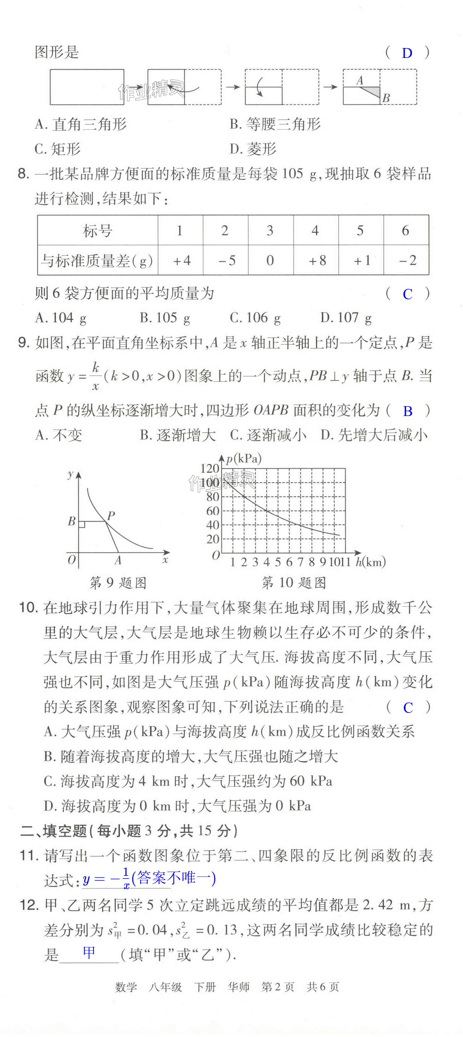 注:目前有些书本章节名称可能整理的还不是很完善,但都是按照顺序排列的,请同学们按照顺序仔细查找。练习册 2024年期末考试必刷卷八年级数学下册华师大版洛阳专版 答案主要是用来给同学们做完题方便对答案用的,请勿直接抄袭。