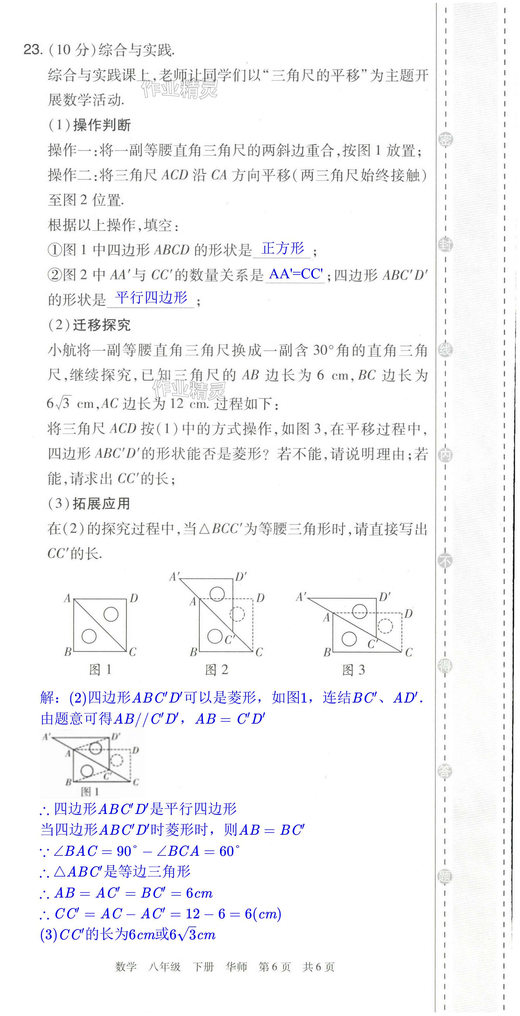 注:目前有些书本章节名称可能整理的还不是很完善,但都是按照顺序排列的,请同学们按照顺序仔细查找。练习册 2024年期末考试必刷卷八年级数学下册华师大版洛阳专版 答案主要是用来给同学们做完题方便对答案用的,请勿直接抄袭。