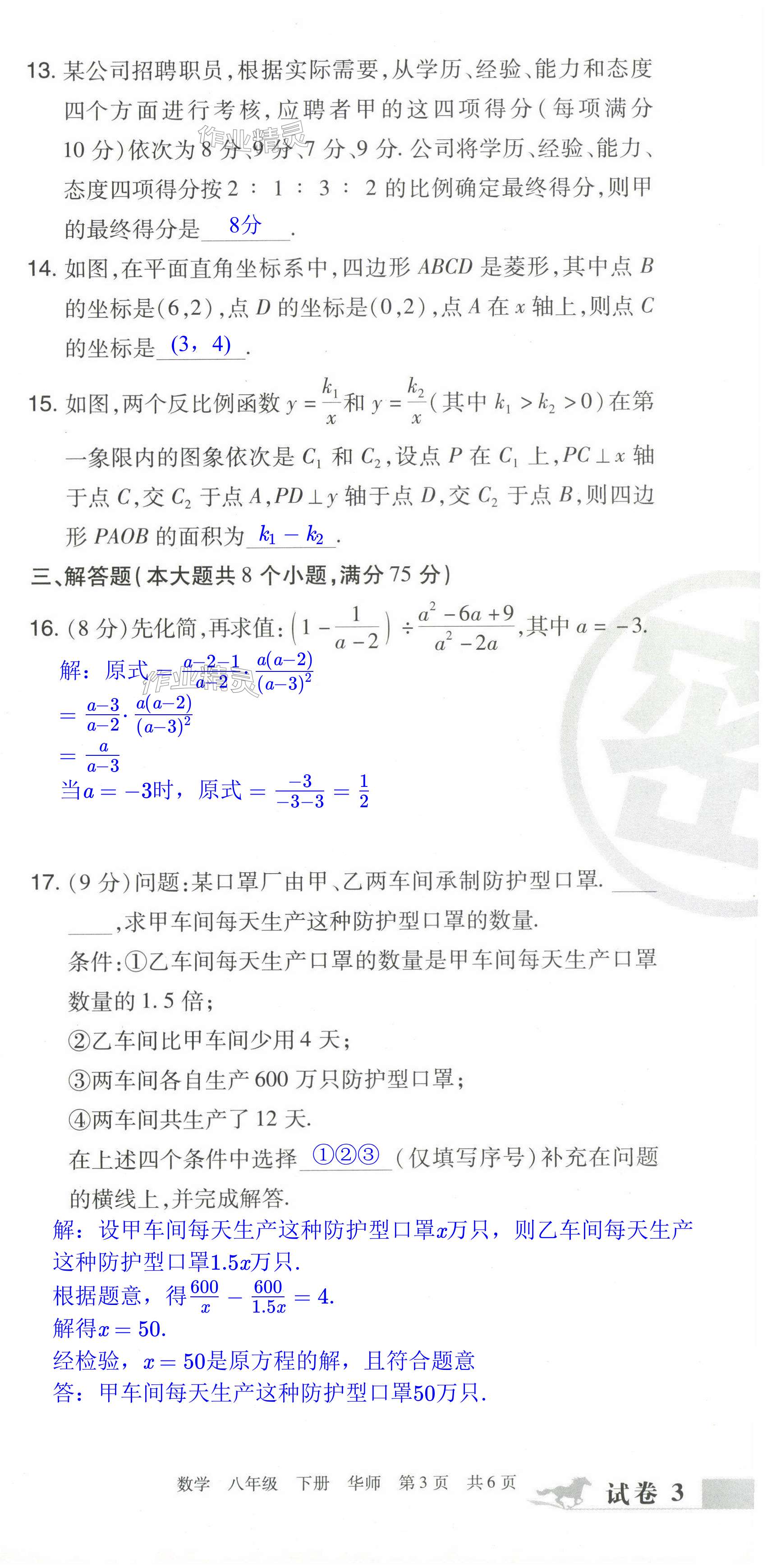 注:目前有些书本章节名称可能整理的还不是很完善,但都是按照顺序排列的,请同学们按照顺序仔细查找。练习册 2024年期末考试必刷卷八年级数学下册华师大版洛阳专版 答案主要是用来给同学们做完题方便对答案用的,请勿直接抄袭。