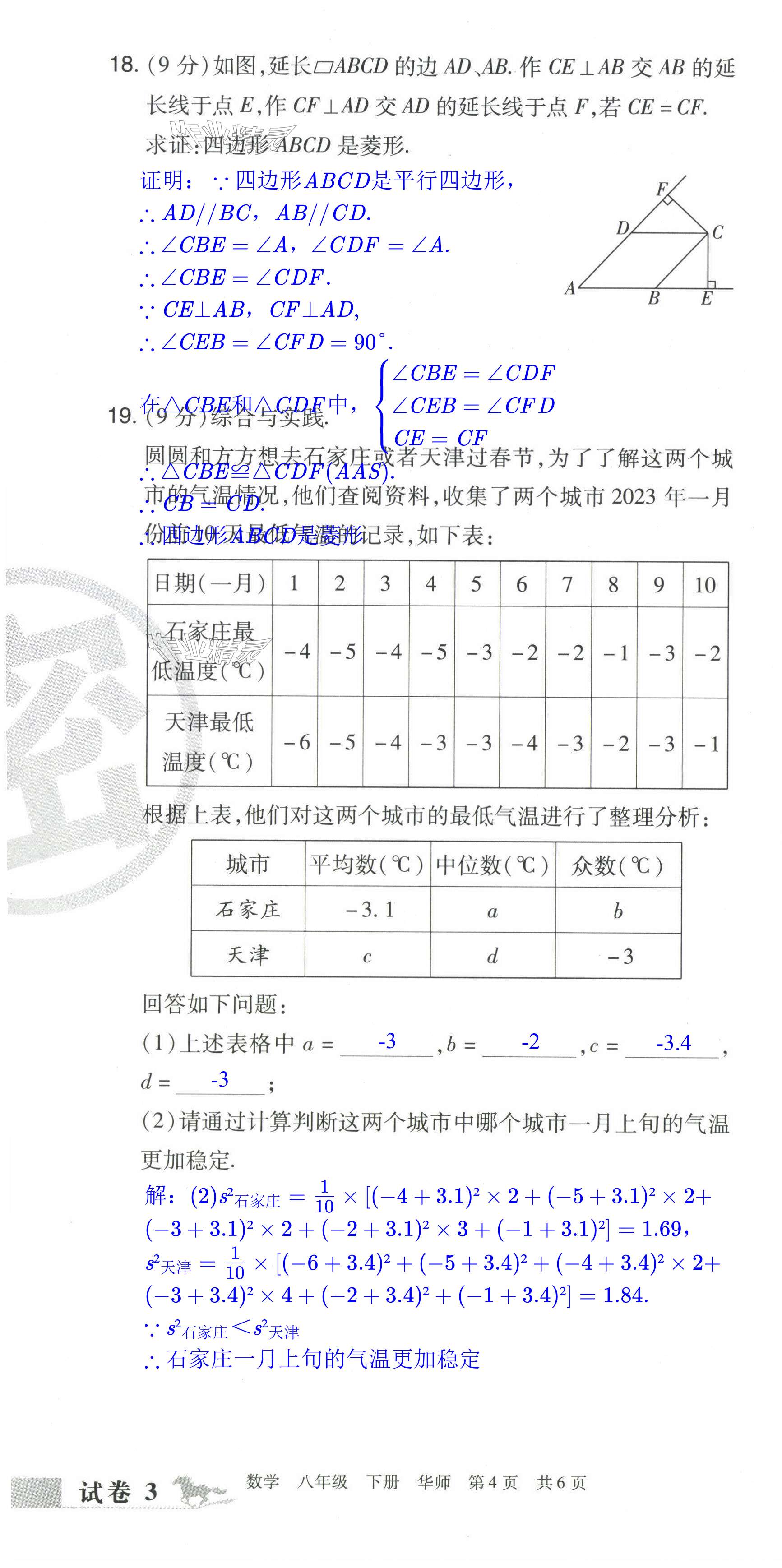 注:目前有些书本章节名称可能整理的还不是很完善,但都是按照顺序排列的,请同学们按照顺序仔细查找。练习册 2024年期末考试必刷卷八年级数学下册华师大版洛阳专版 答案主要是用来给同学们做完题方便对答案用的,请勿直接抄袭。