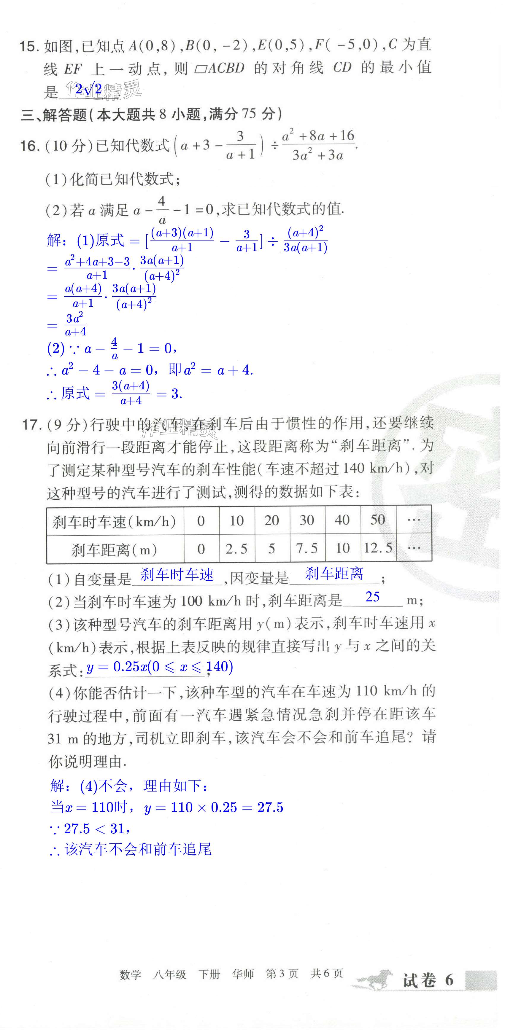 注:目前有些书本章节名称可能整理的还不是很完善,但都是按照顺序排列的,请同学们按照顺序仔细查找。练习册 2024年期末考试必刷卷八年级数学下册华师大版洛阳专版 答案主要是用来给同学们做完题方便对答案用的,请勿直接抄袭。