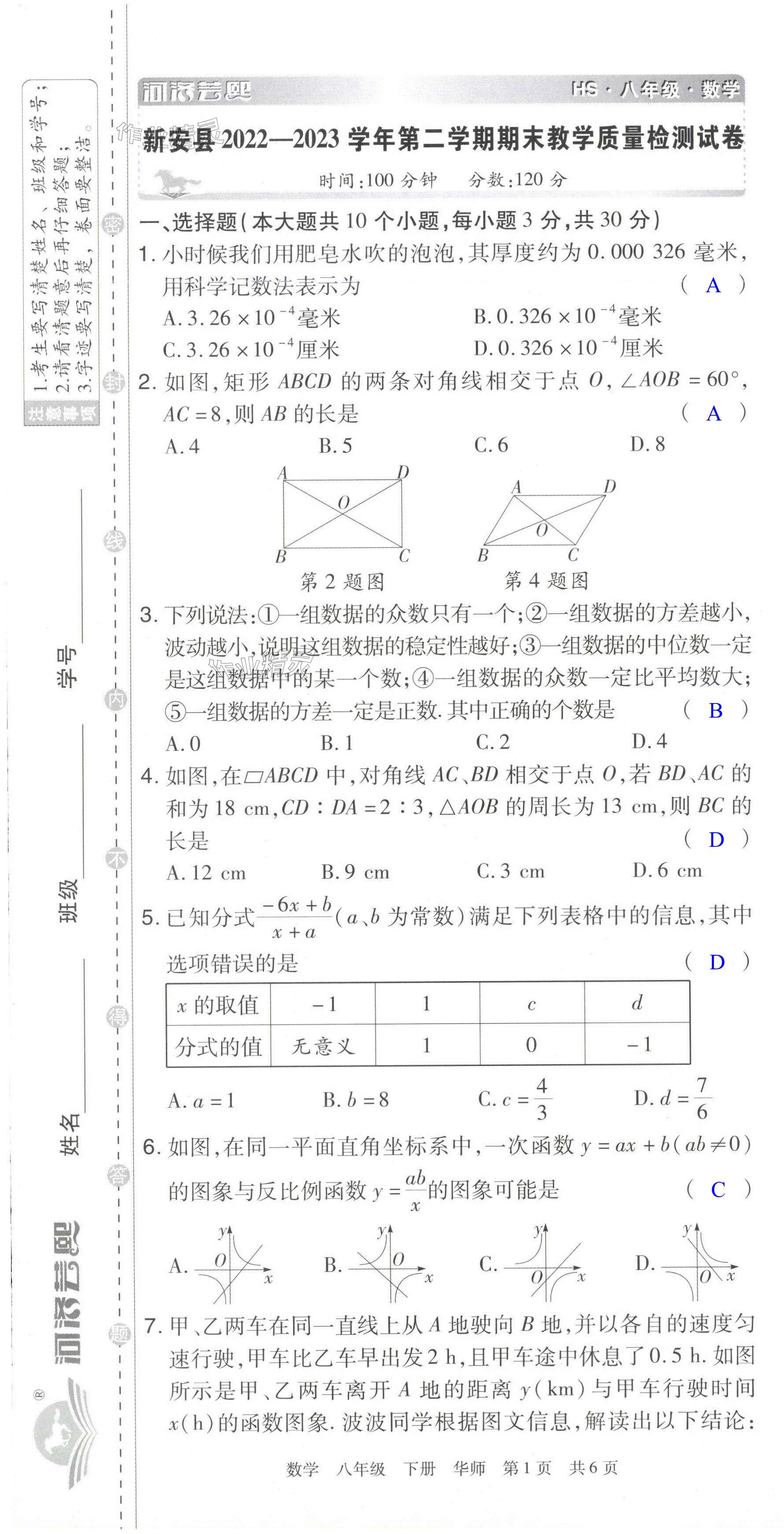 注:目前有些书本章节名称可能整理的还不是很完善,但都是按照顺序排列的,请同学们按照顺序仔细查找。练习册 2024年期末考试必刷卷八年级数学下册华师大版洛阳专版 答案主要是用来给同学们做完题方便对答案用的,请勿直接抄袭。
