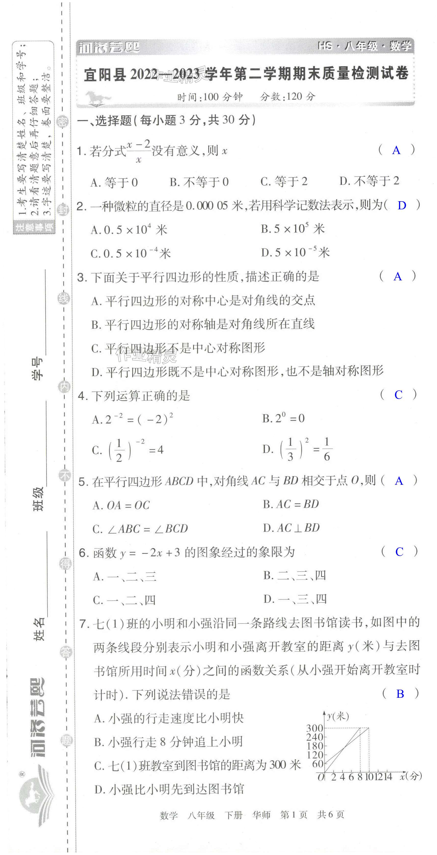 注:目前有些书本章节名称可能整理的还不是很完善,但都是按照顺序排列的,请同学们按照顺序仔细查找。练习册 2024年期末考试必刷卷八年级数学下册华师大版洛阳专版 答案主要是用来给同学们做完题方便对答案用的,请勿直接抄袭。