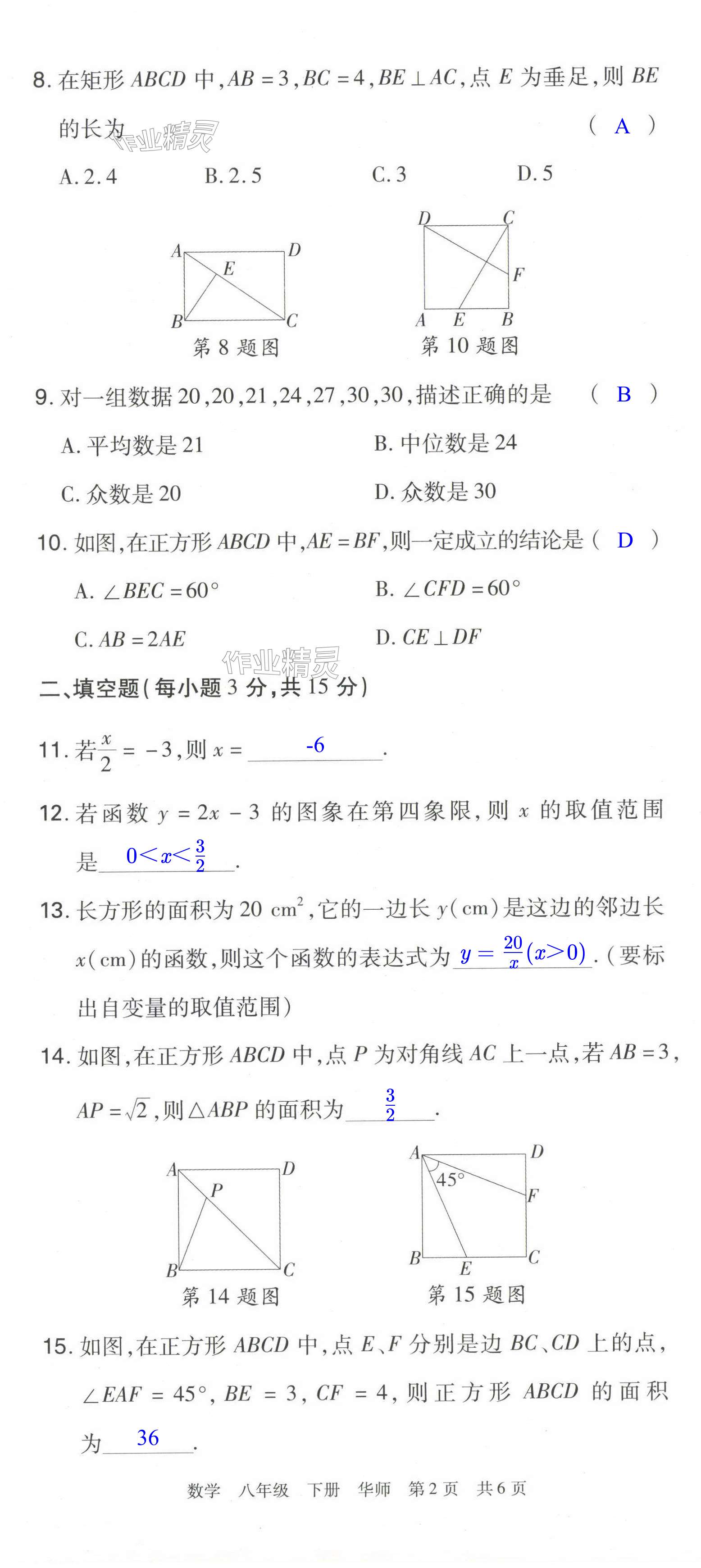 注:目前有些书本章节名称可能整理的还不是很完善,但都是按照顺序排列的,请同学们按照顺序仔细查找。练习册 2024年期末考试必刷卷八年级数学下册华师大版洛阳专版 答案主要是用来给同学们做完题方便对答案用的,请勿直接抄袭。