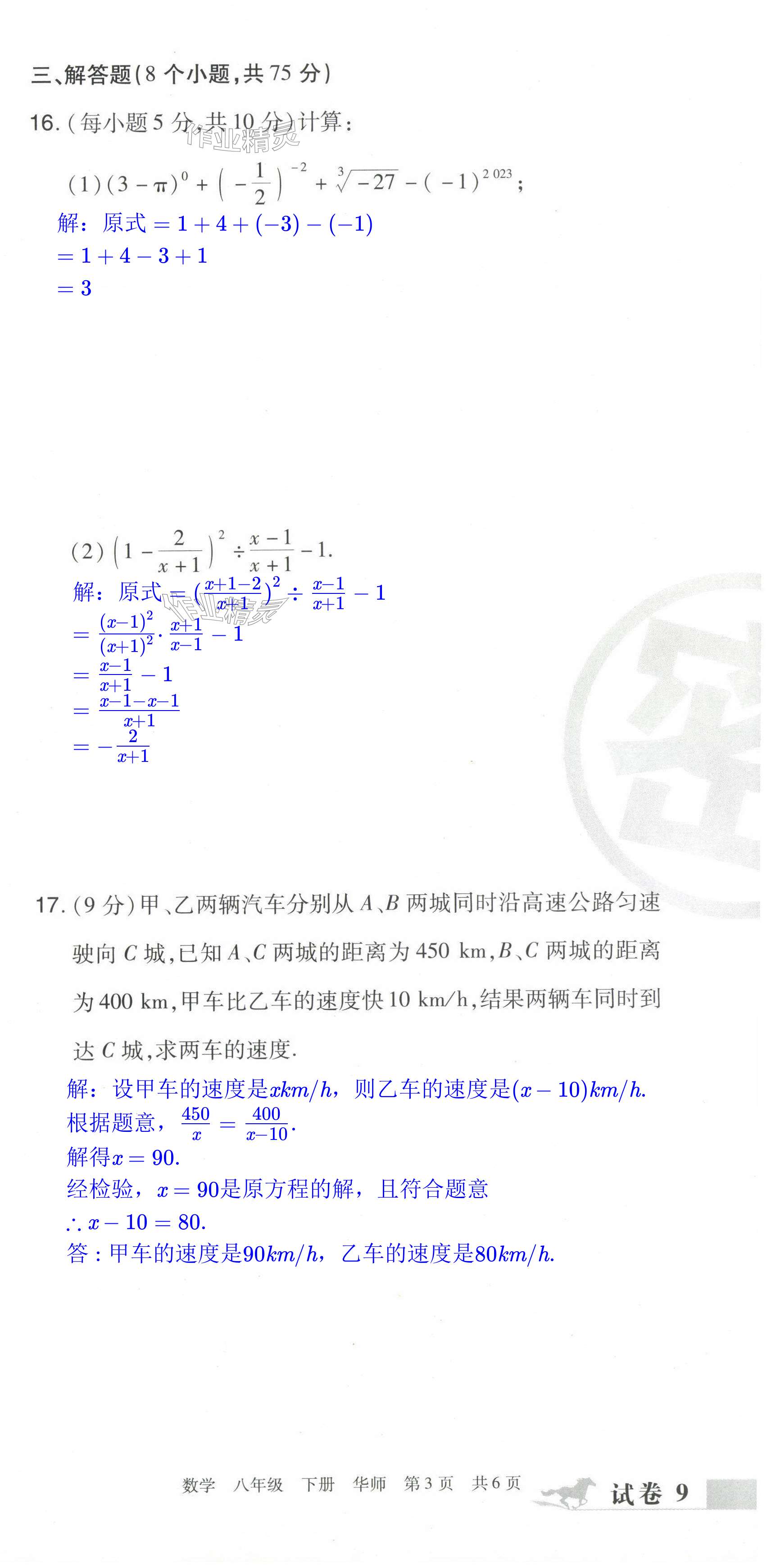 注:目前有些书本章节名称可能整理的还不是很完善,但都是按照顺序排列的,请同学们按照顺序仔细查找。练习册 2024年期末考试必刷卷八年级数学下册华师大版洛阳专版 答案主要是用来给同学们做完题方便对答案用的,请勿直接抄袭。