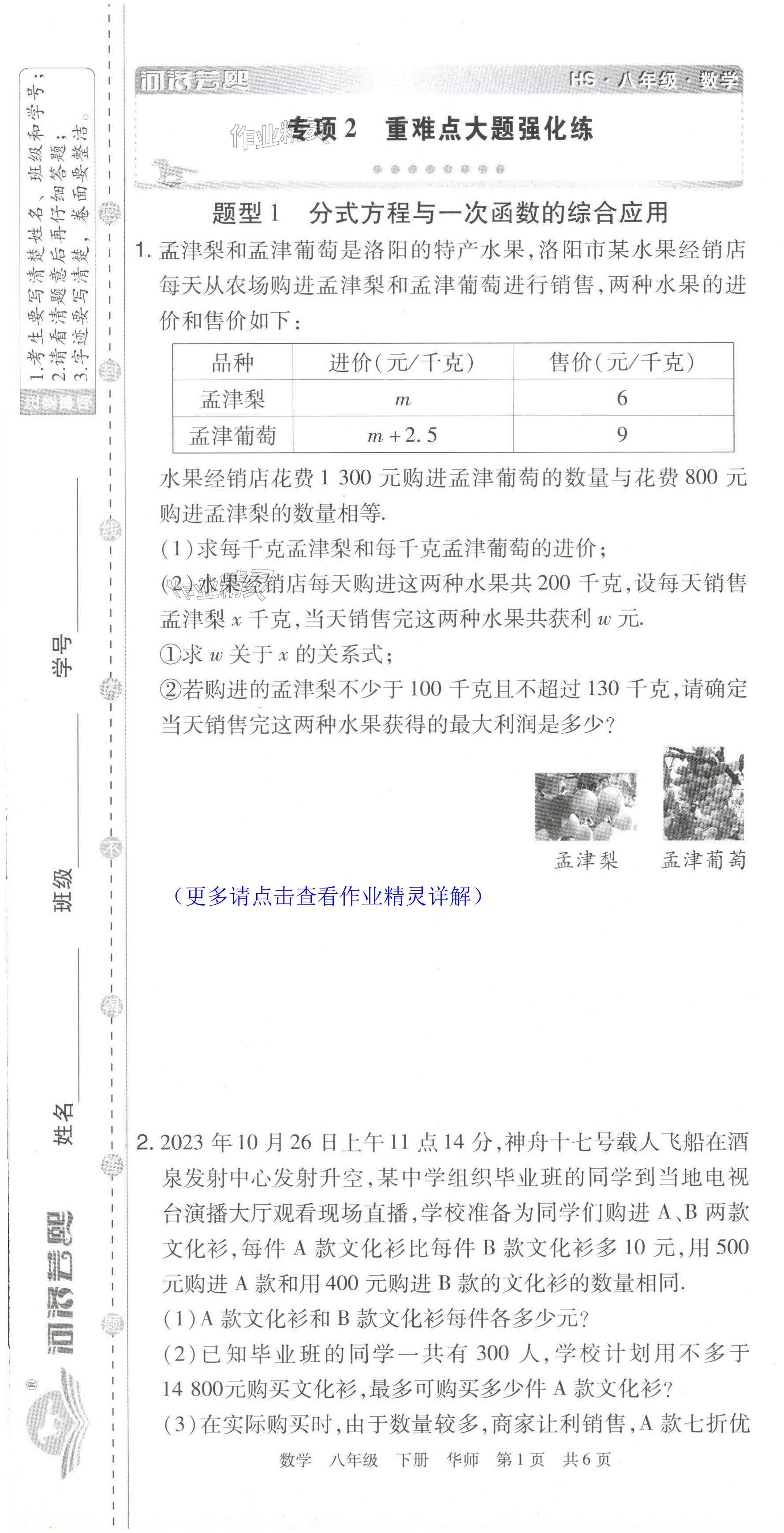 注:目前有些书本章节名称可能整理的还不是很完善,但都是按照顺序排列的,请同学们按照顺序仔细查找。练习册 2024年期末考试必刷卷八年级数学下册华师大版洛阳专版 答案主要是用来给同学们做完题方便对答案用的,请勿直接抄袭。
