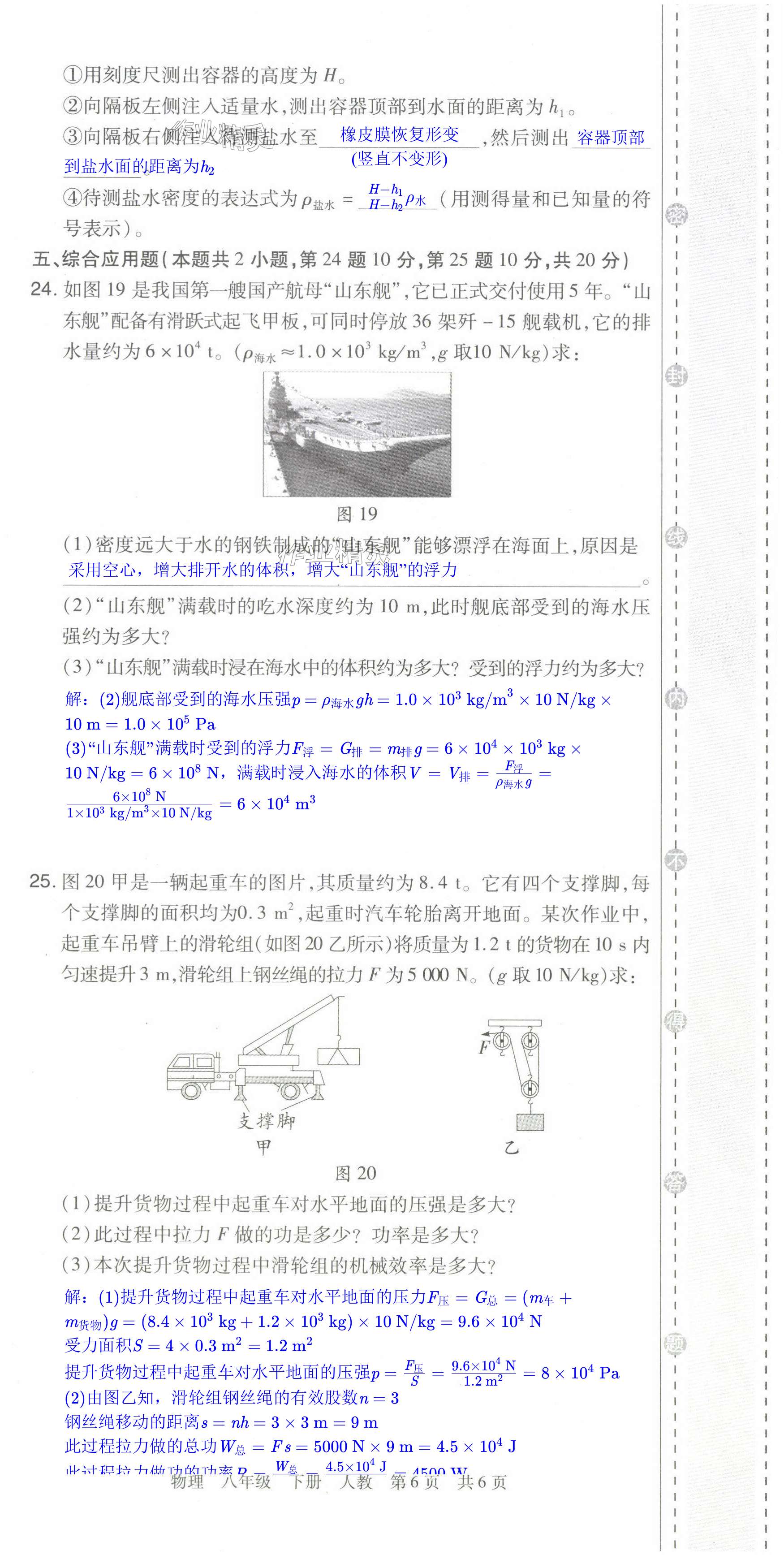 注:目前有些书本章节名称可能整理的还不是很完善,但都是按照顺序排列的,请同学们按照顺序仔细查找。练习册 2024年期末考试必刷卷八年级物理下册人教版洛阳专版 答案主要是用来给同学们做完题方便对答案用的,请勿直接抄袭。