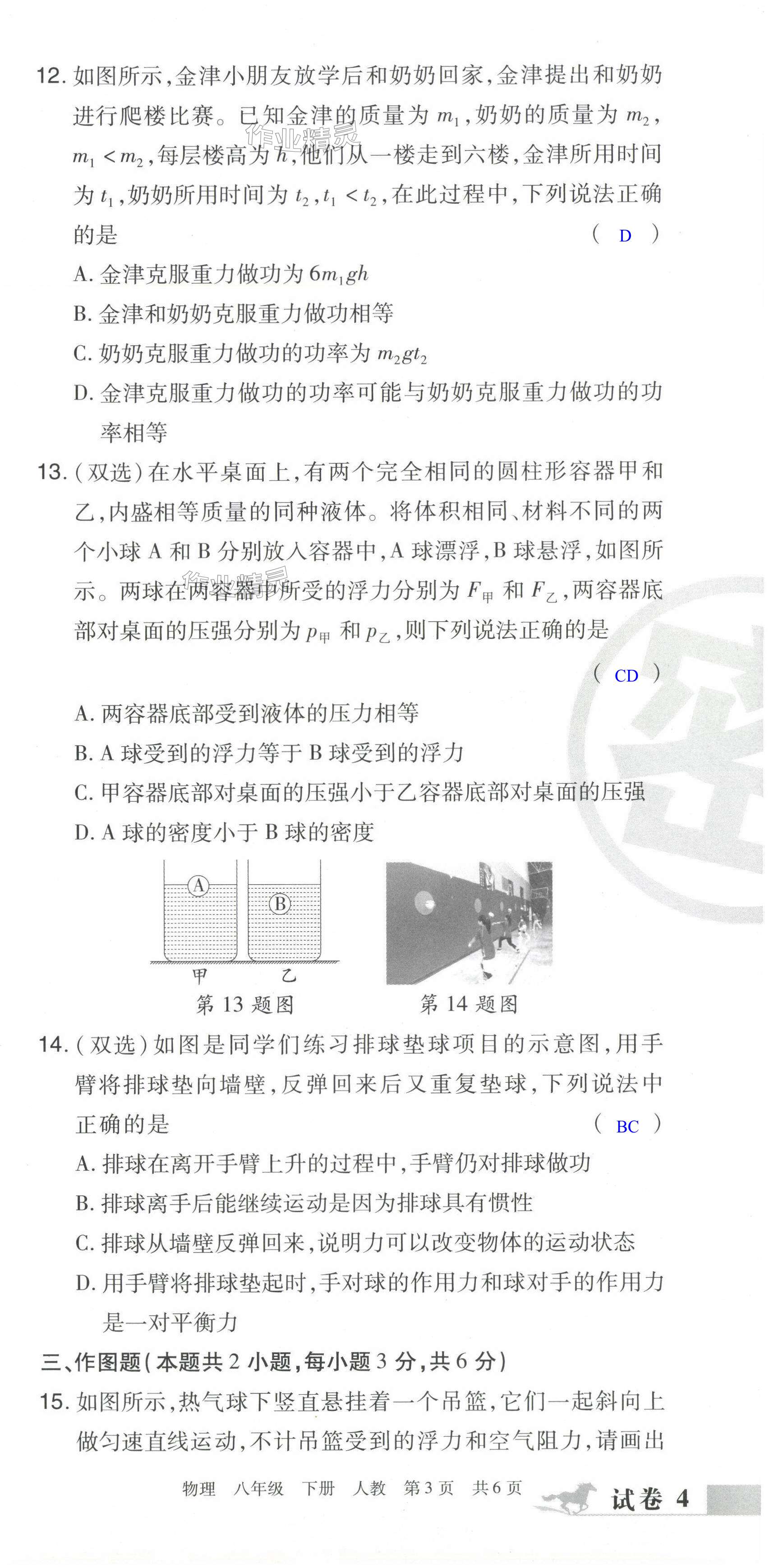 注:目前有些书本章节名称可能整理的还不是很完善,但都是按照顺序排列的,请同学们按照顺序仔细查找。练习册 2024年期末考试必刷卷八年级物理下册人教版洛阳专版 答案主要是用来给同学们做完题方便对答案用的,请勿直接抄袭。