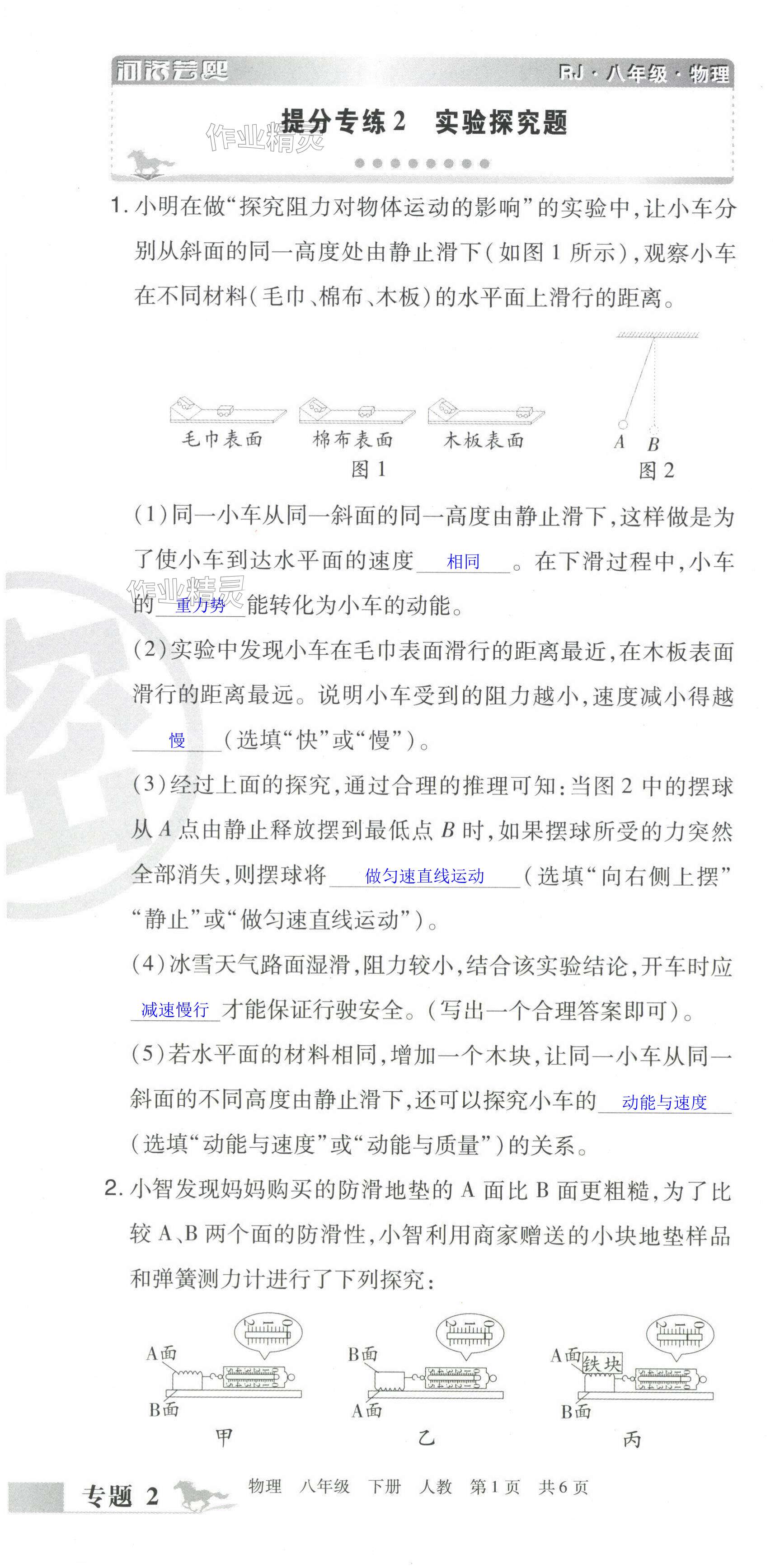注:目前有些书本章节名称可能整理的还不是很完善,但都是按照顺序排列的,请同学们按照顺序仔细查找。练习册 2024年期末考试必刷卷八年级物理下册人教版洛阳专版 答案主要是用来给同学们做完题方便对答案用的,请勿直接抄袭。