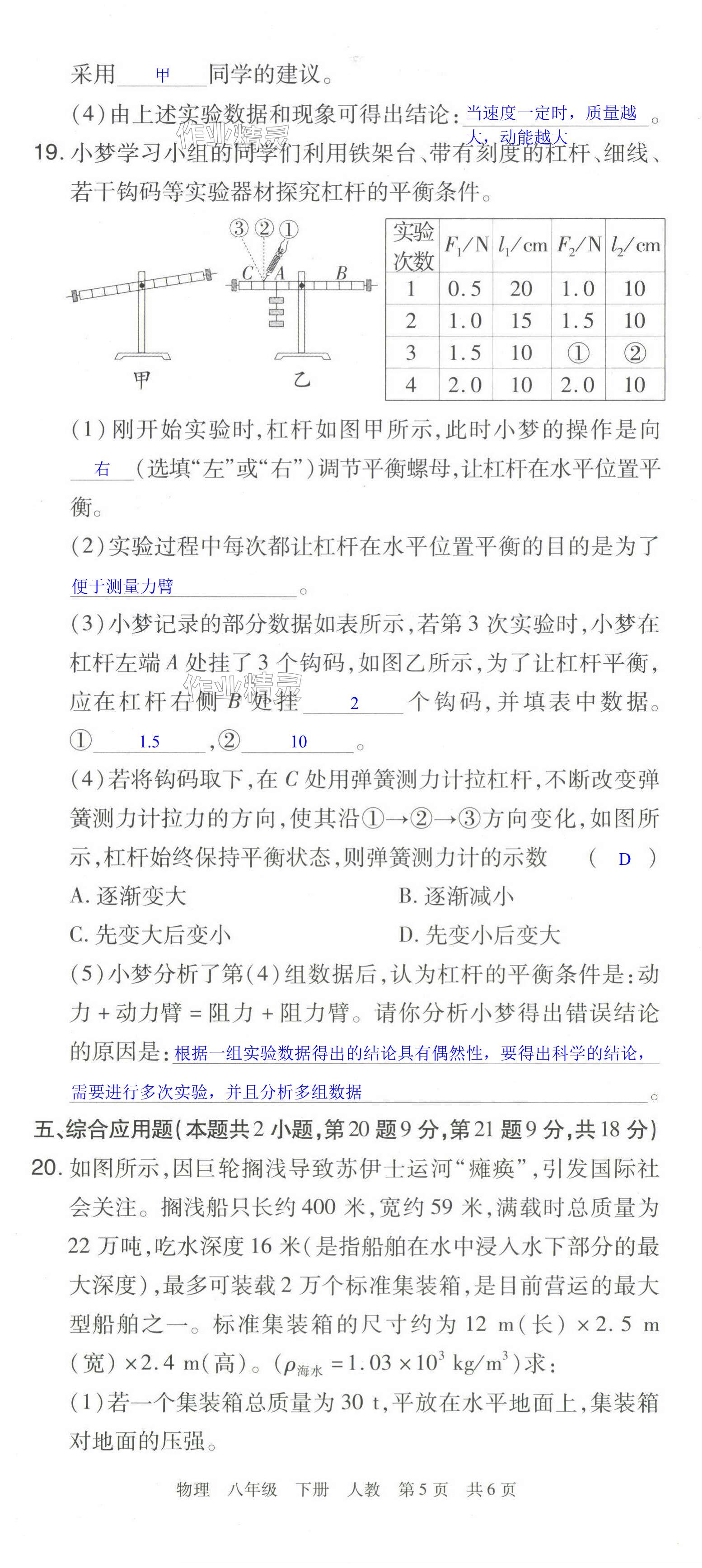 注:目前有些书本章节名称可能整理的还不是很完善,但都是按照顺序排列的,请同学们按照顺序仔细查找。练习册 2024年期末考试必刷卷八年级物理下册人教版洛阳专版 答案主要是用来给同学们做完题方便对答案用的,请勿直接抄袭。