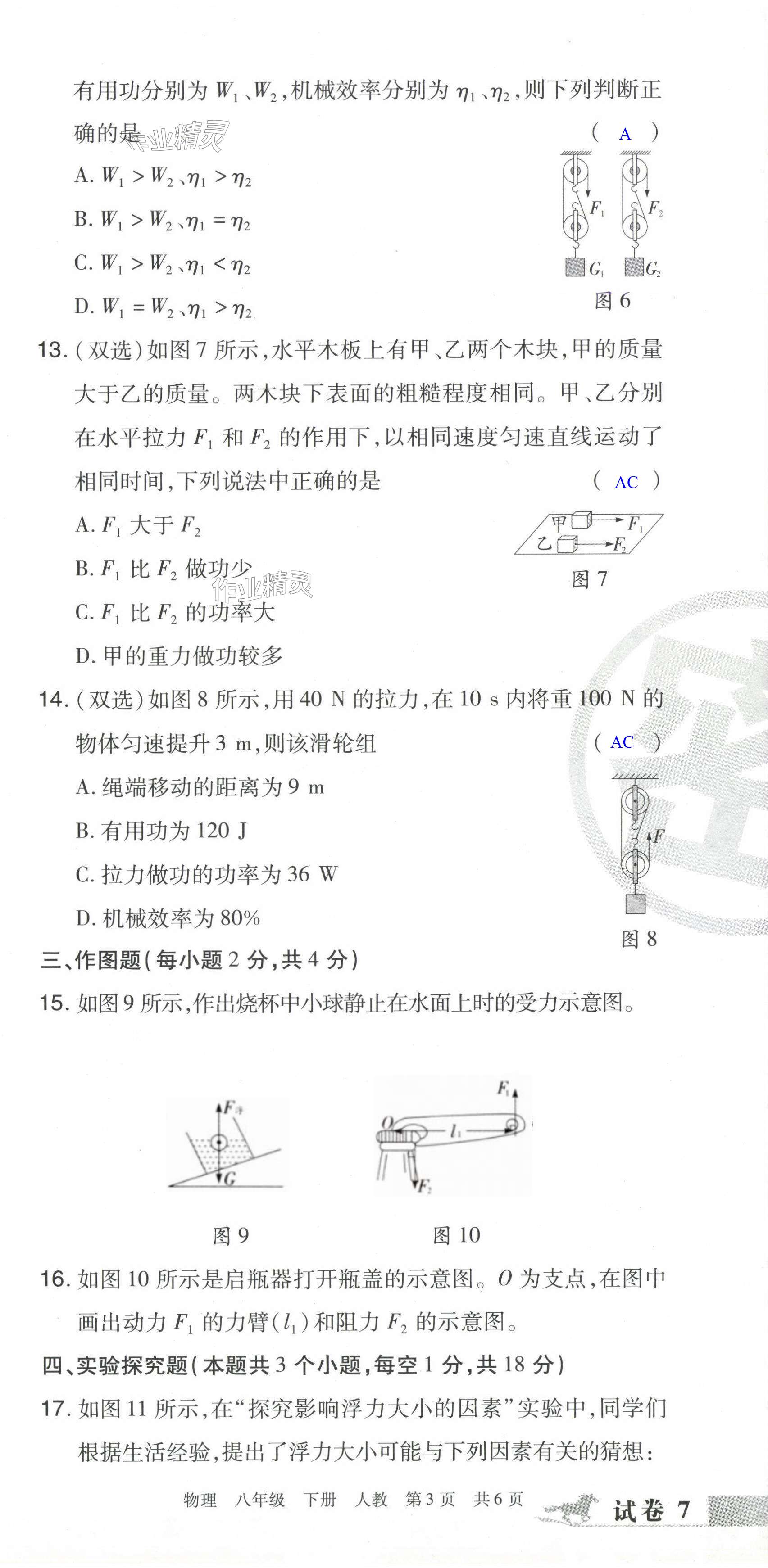 注:目前有些书本章节名称可能整理的还不是很完善,但都是按照顺序排列的,请同学们按照顺序仔细查找。练习册 2024年期末考试必刷卷八年级物理下册人教版洛阳专版 答案主要是用来给同学们做完题方便对答案用的,请勿直接抄袭。