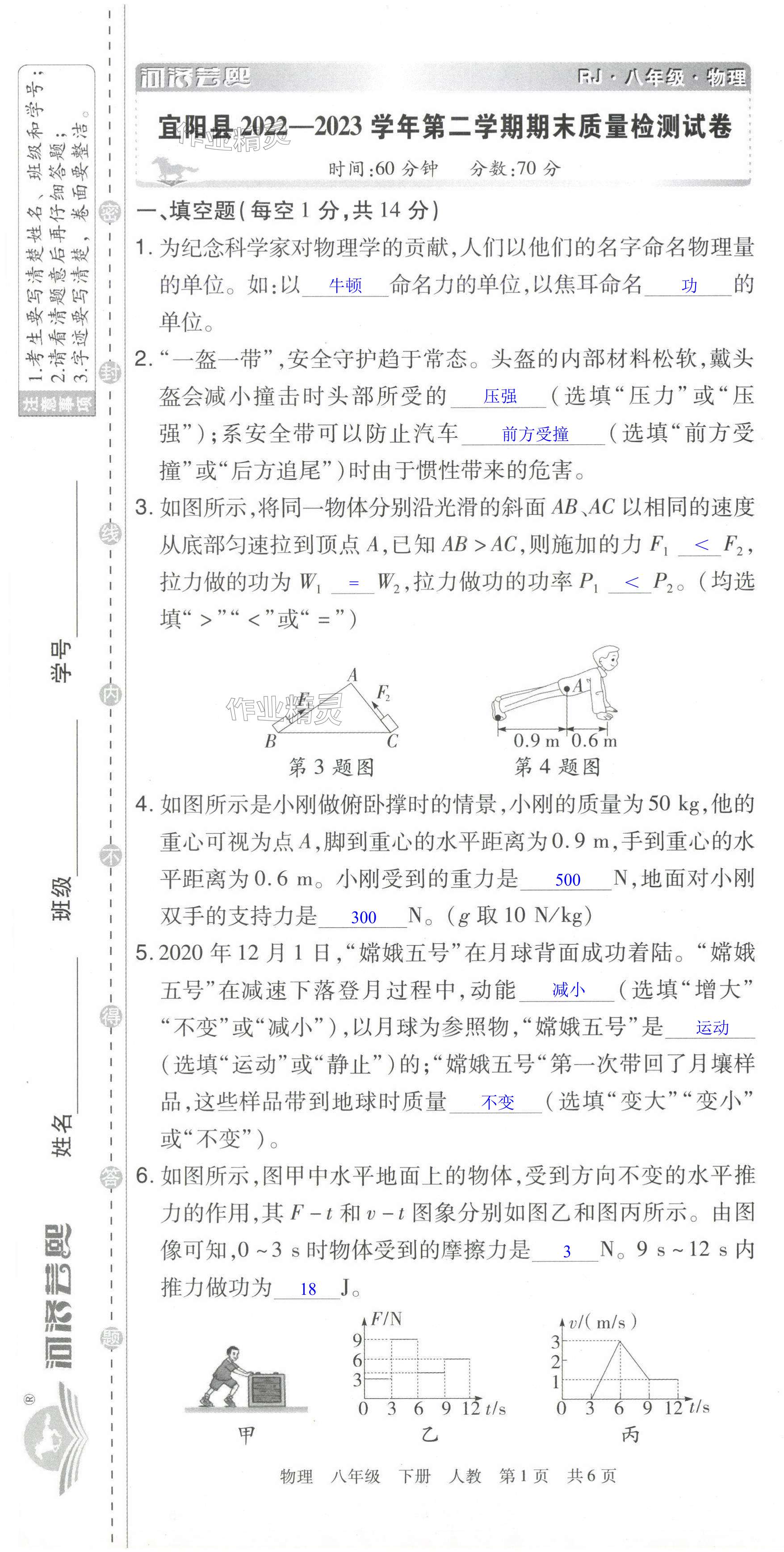注:目前有些书本章节名称可能整理的还不是很完善,但都是按照顺序排列的,请同学们按照顺序仔细查找。练习册 2024年期末考试必刷卷八年级物理下册人教版洛阳专版 答案主要是用来给同学们做完题方便对答案用的,请勿直接抄袭。