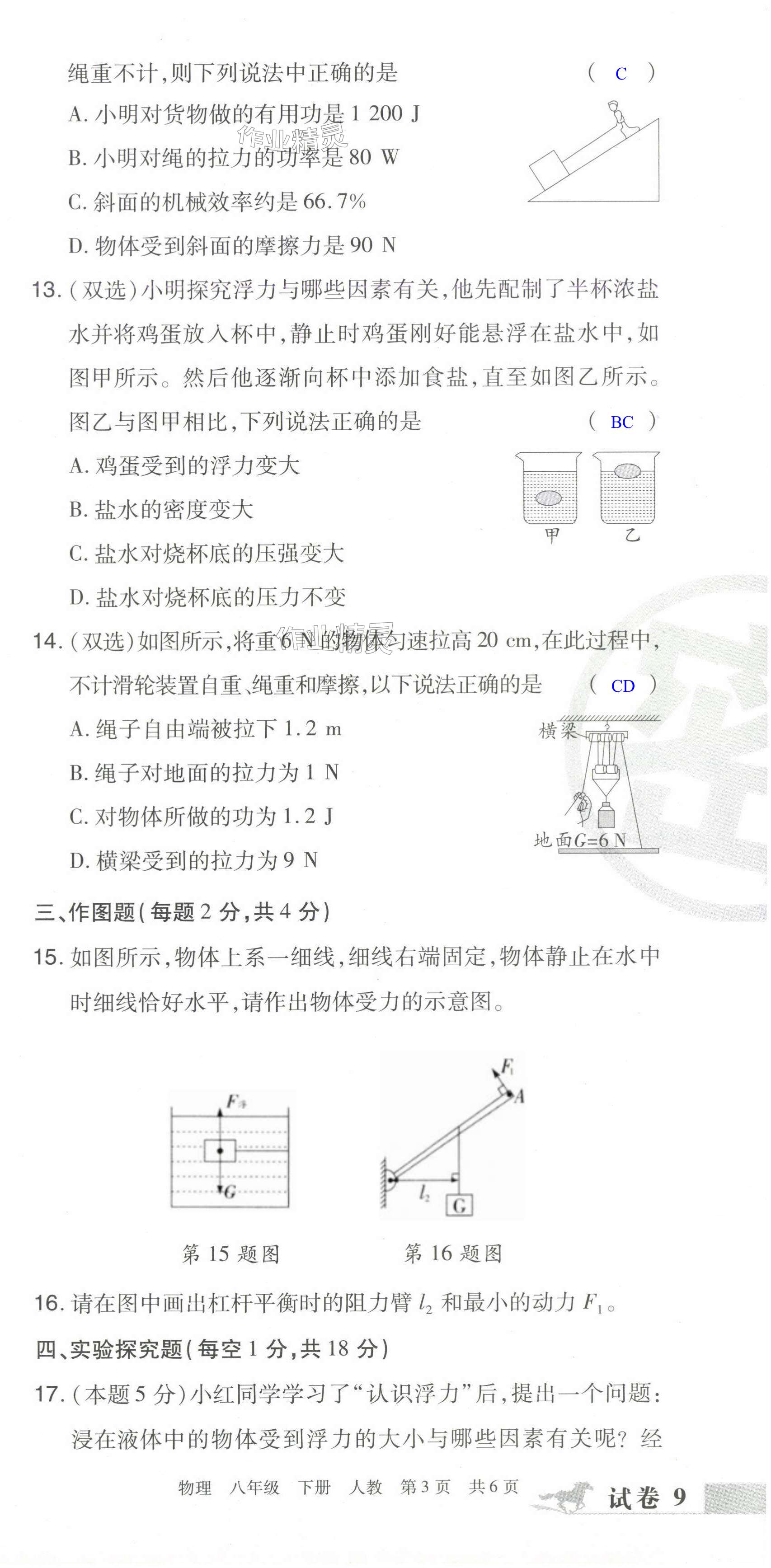 注:目前有些书本章节名称可能整理的还不是很完善,但都是按照顺序排列的,请同学们按照顺序仔细查找。练习册 2024年期末考试必刷卷八年级物理下册人教版洛阳专版 答案主要是用来给同学们做完题方便对答案用的,请勿直接抄袭。
