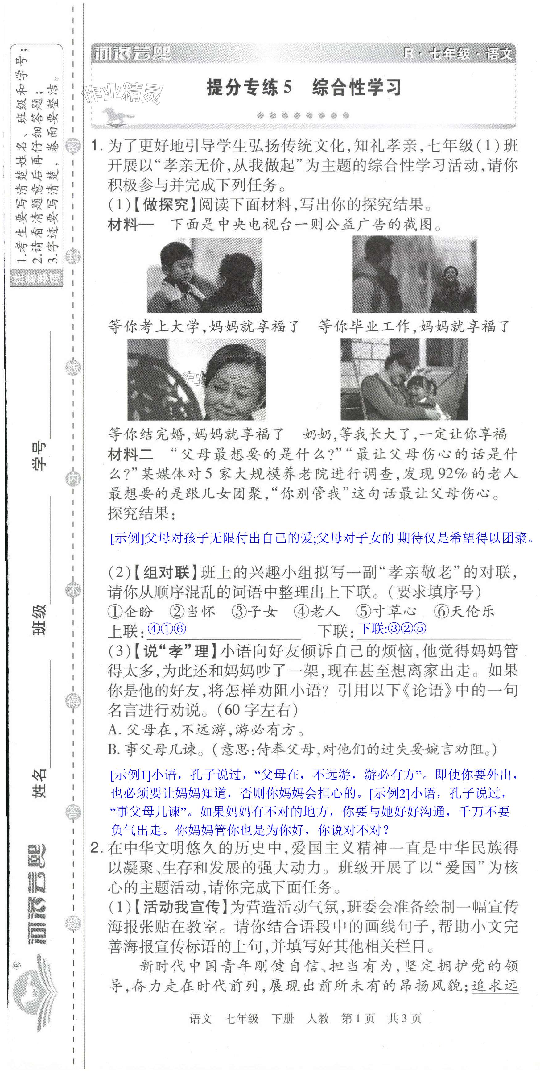 注:目前有些书本章节名称可能整理的还不是很完善,但都是按照顺序排列的,请同学们按照顺序仔细查找。练习册 2024年期末考试必刷卷七年级语文下册人教版洛阳专版 答案主要是用来给同学们做完题方便对答案用的,请勿直接抄袭。