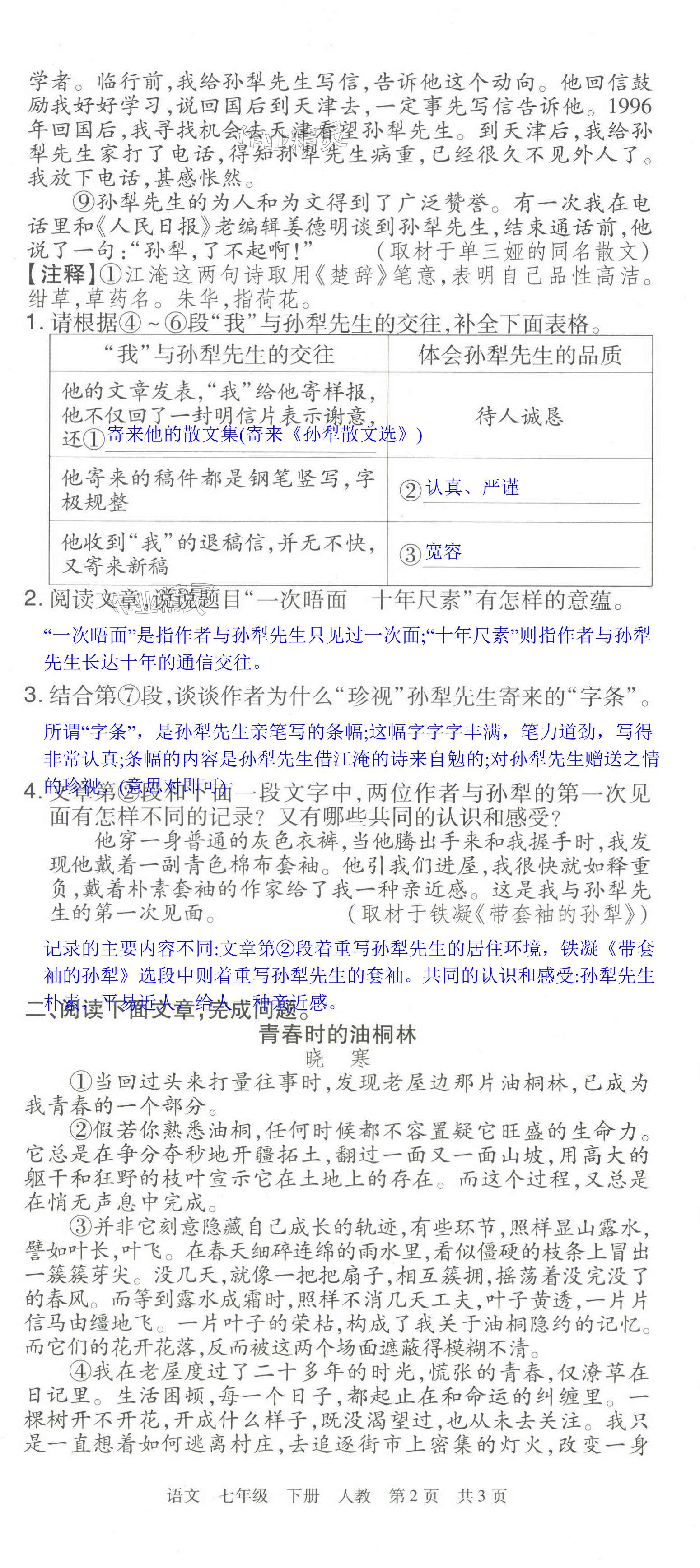注:目前有些书本章节名称可能整理的还不是很完善,但都是按照顺序排列的,请同学们按照顺序仔细查找。练习册 2024年期末考试必刷卷七年级语文下册人教版洛阳专版 答案主要是用来给同学们做完题方便对答案用的,请勿直接抄袭。