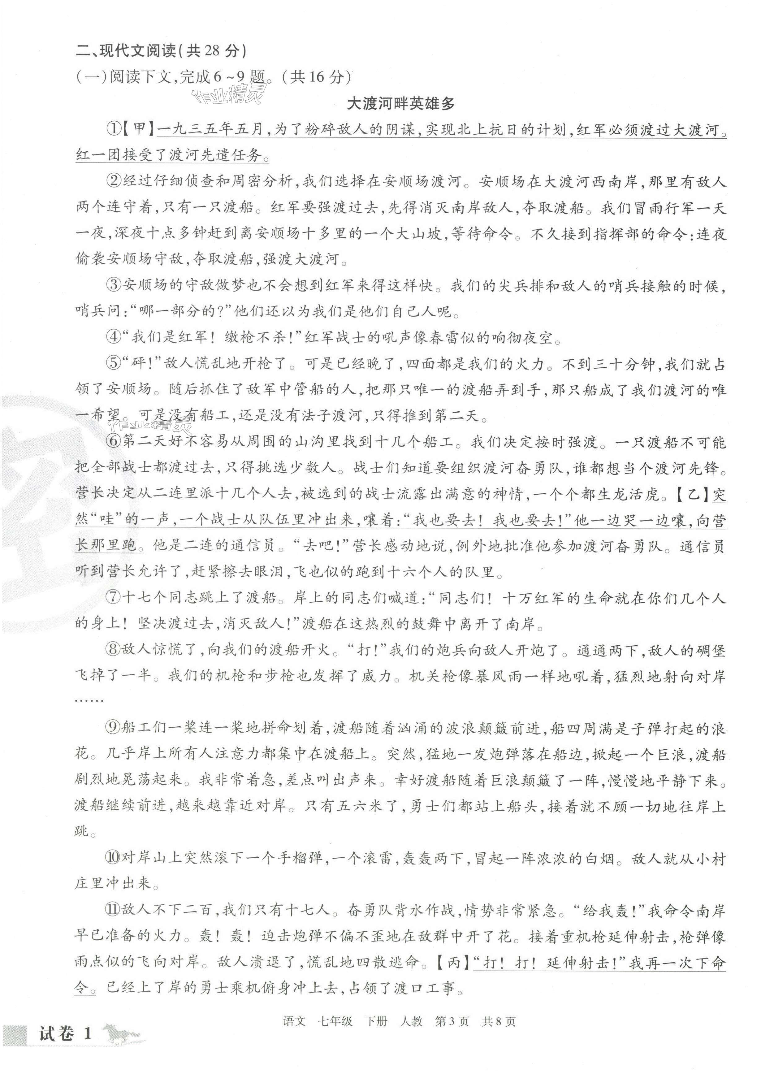 注:目前有些书本章节名称可能整理的还不是很完善,但都是按照顺序排列的,请同学们按照顺序仔细查找。练习册 2024年期末考试必刷卷七年级语文下册人教版洛阳专版 答案主要是用来给同学们做完题方便对答案用的,请勿直接抄袭。