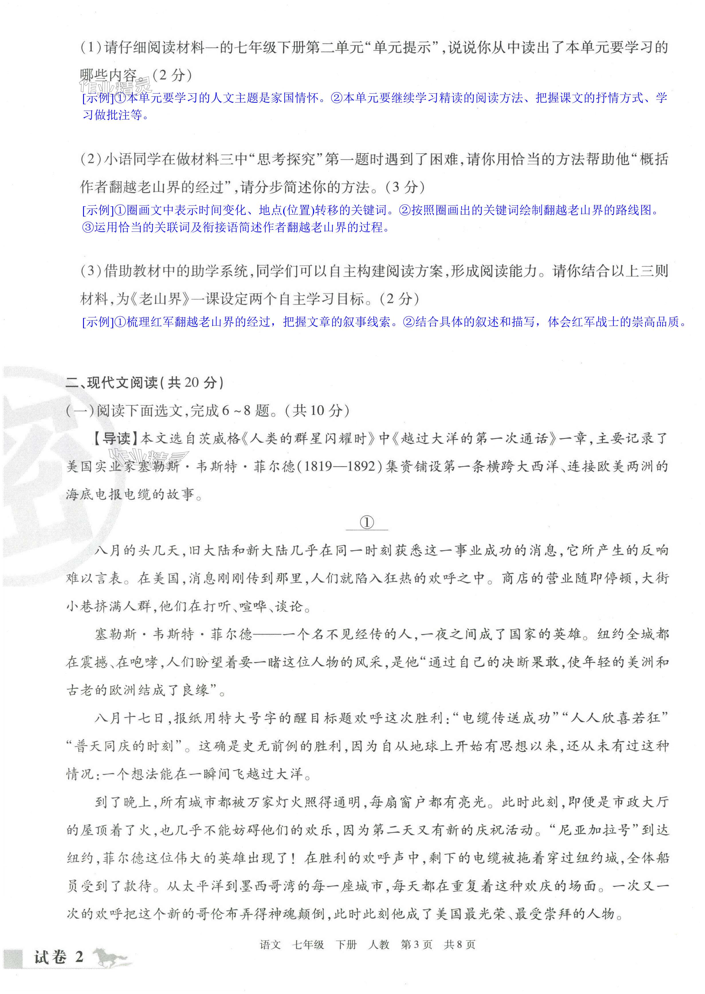 注:目前有些书本章节名称可能整理的还不是很完善,但都是按照顺序排列的,请同学们按照顺序仔细查找。练习册 2024年期末考试必刷卷七年级语文下册人教版洛阳专版 答案主要是用来给同学们做完题方便对答案用的,请勿直接抄袭。