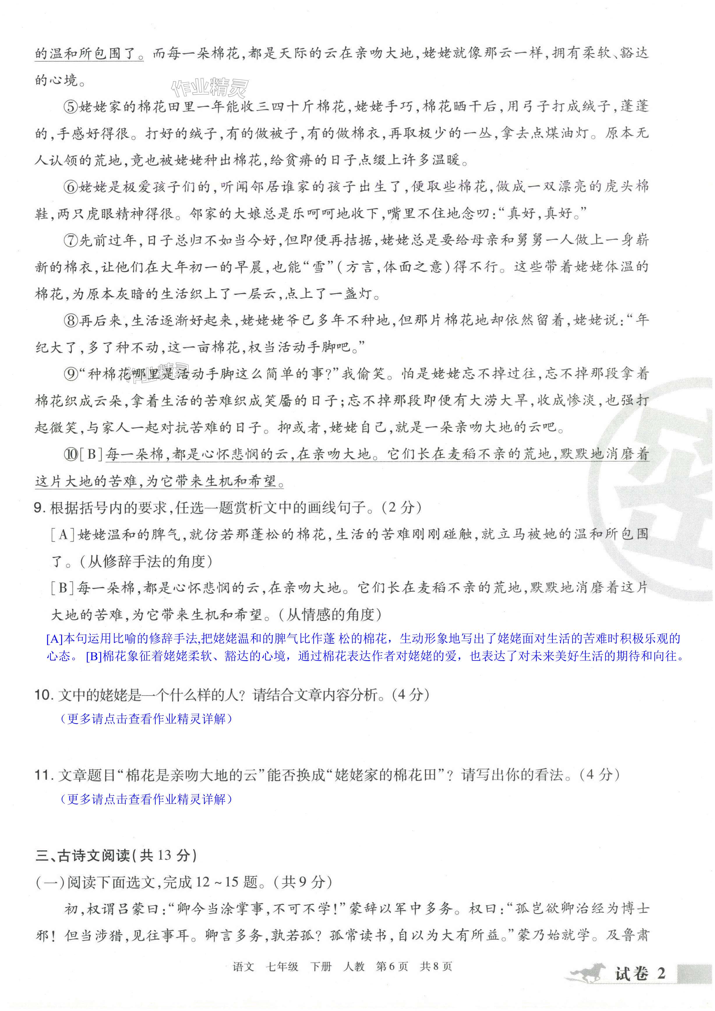 注:目前有些书本章节名称可能整理的还不是很完善,但都是按照顺序排列的,请同学们按照顺序仔细查找。练习册 2024年期末考试必刷卷七年级语文下册人教版洛阳专版 答案主要是用来给同学们做完题方便对答案用的,请勿直接抄袭。