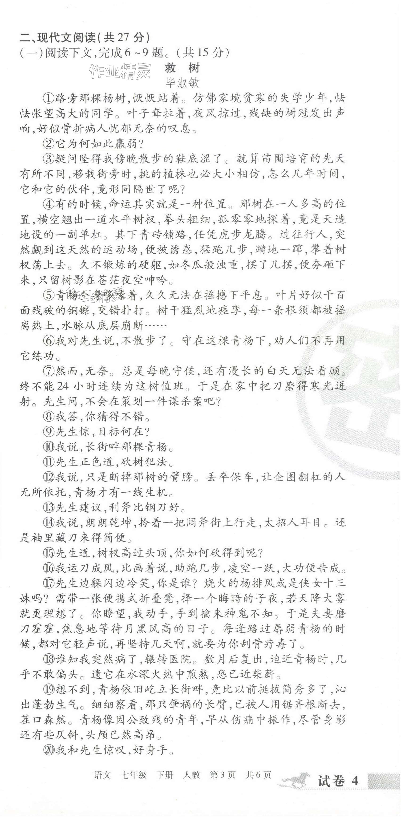 注:目前有些书本章节名称可能整理的还不是很完善,但都是按照顺序排列的,请同学们按照顺序仔细查找。练习册 2024年期末考试必刷卷七年级语文下册人教版洛阳专版 答案主要是用来给同学们做完题方便对答案用的,请勿直接抄袭。