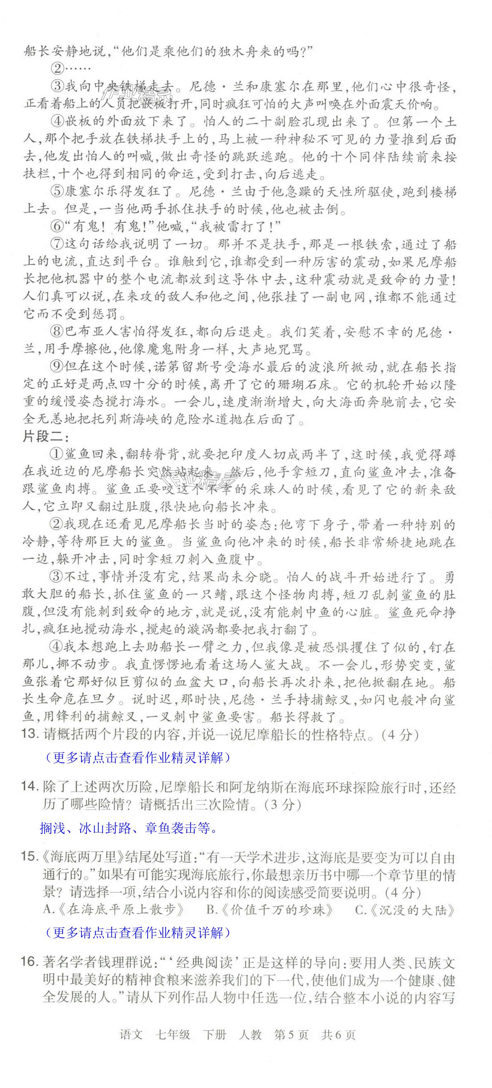注:目前有些书本章节名称可能整理的还不是很完善,但都是按照顺序排列的,请同学们按照顺序仔细查找。练习册 2024年期末考试必刷卷七年级语文下册人教版洛阳专版 答案主要是用来给同学们做完题方便对答案用的,请勿直接抄袭。