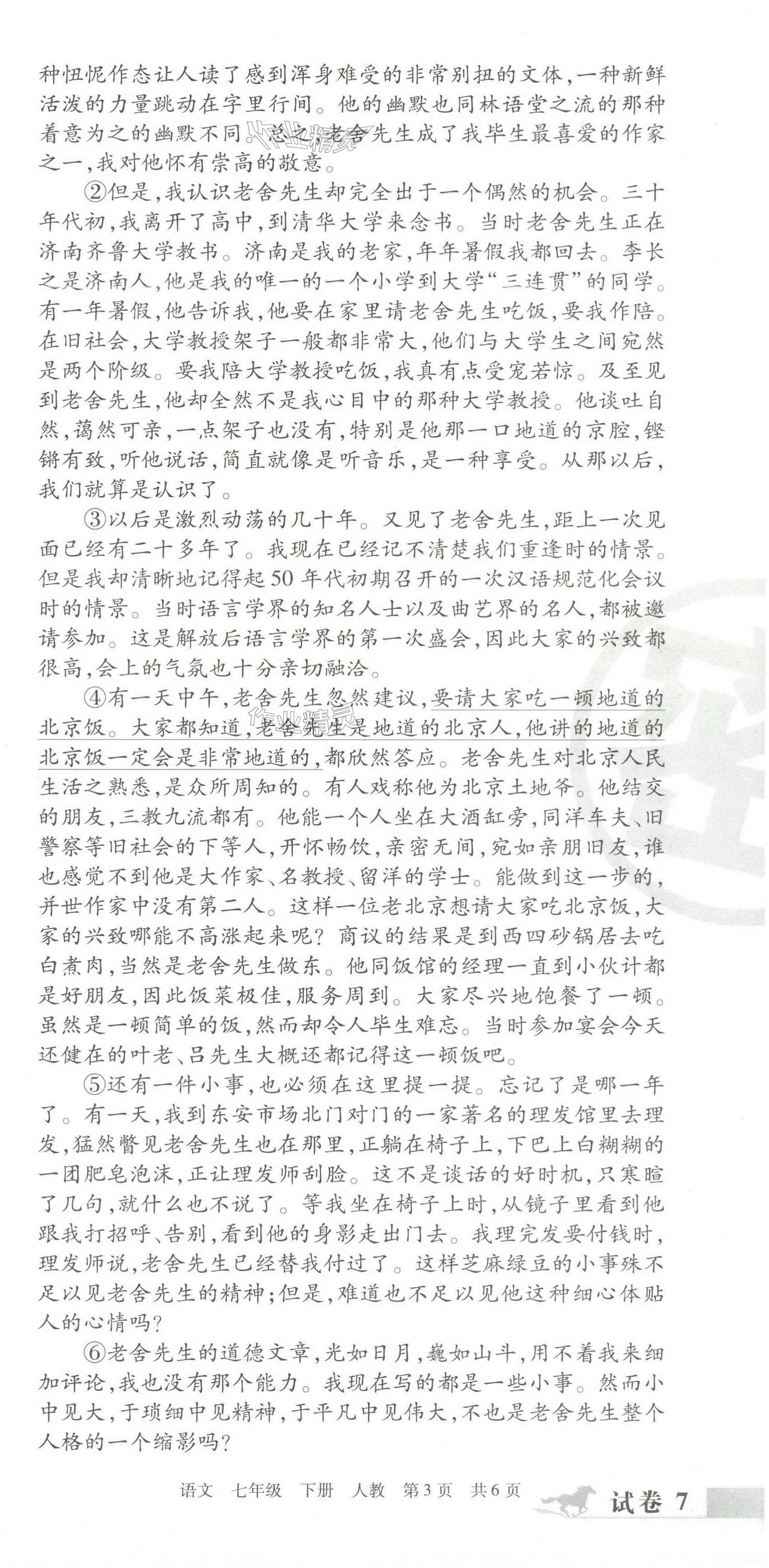 注:目前有些书本章节名称可能整理的还不是很完善,但都是按照顺序排列的,请同学们按照顺序仔细查找。练习册 2024年期末考试必刷卷七年级语文下册人教版洛阳专版 答案主要是用来给同学们做完题方便对答案用的,请勿直接抄袭。