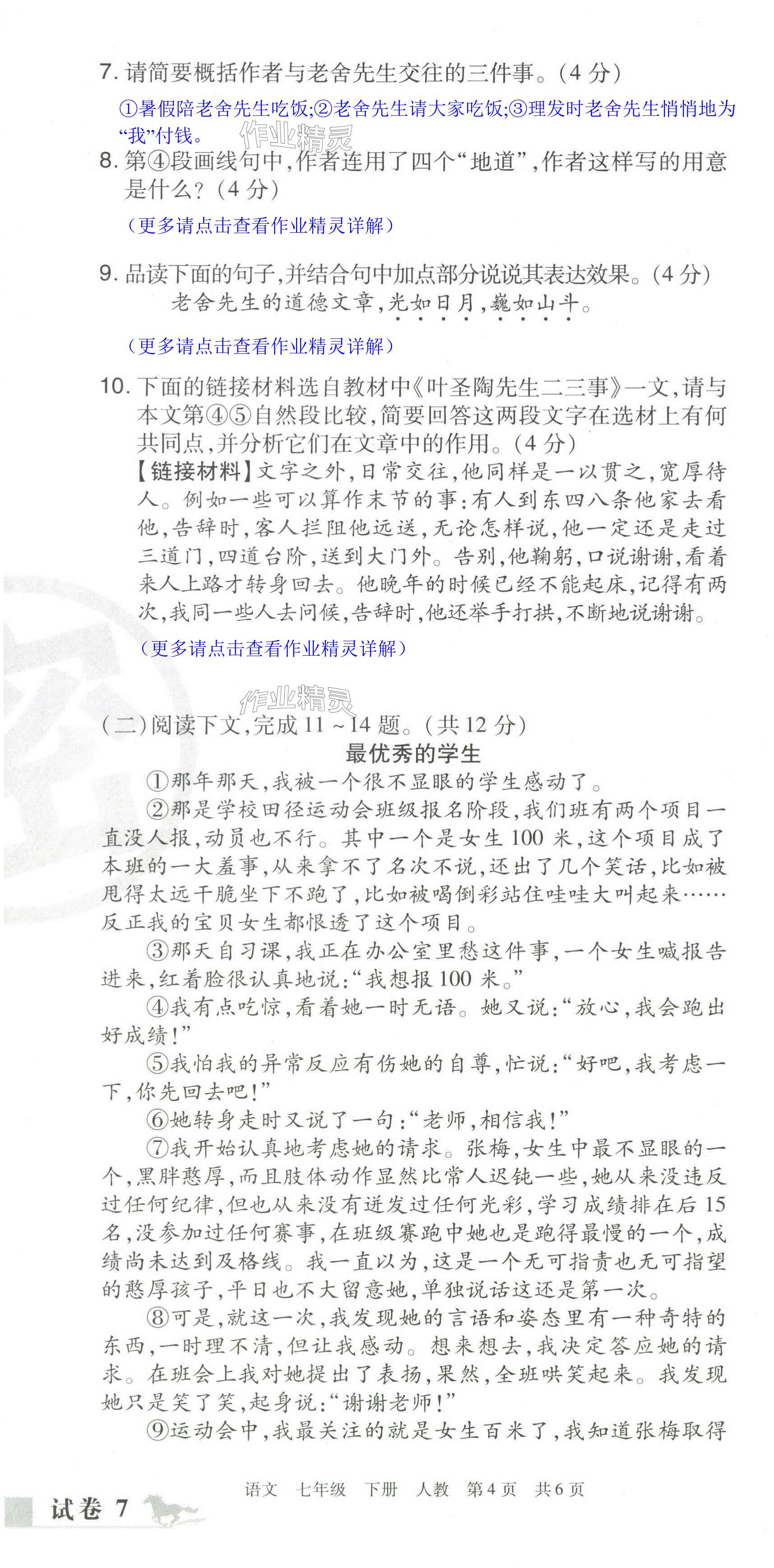 注:目前有些书本章节名称可能整理的还不是很完善,但都是按照顺序排列的,请同学们按照顺序仔细查找。练习册 2024年期末考试必刷卷七年级语文下册人教版洛阳专版 答案主要是用来给同学们做完题方便对答案用的,请勿直接抄袭。