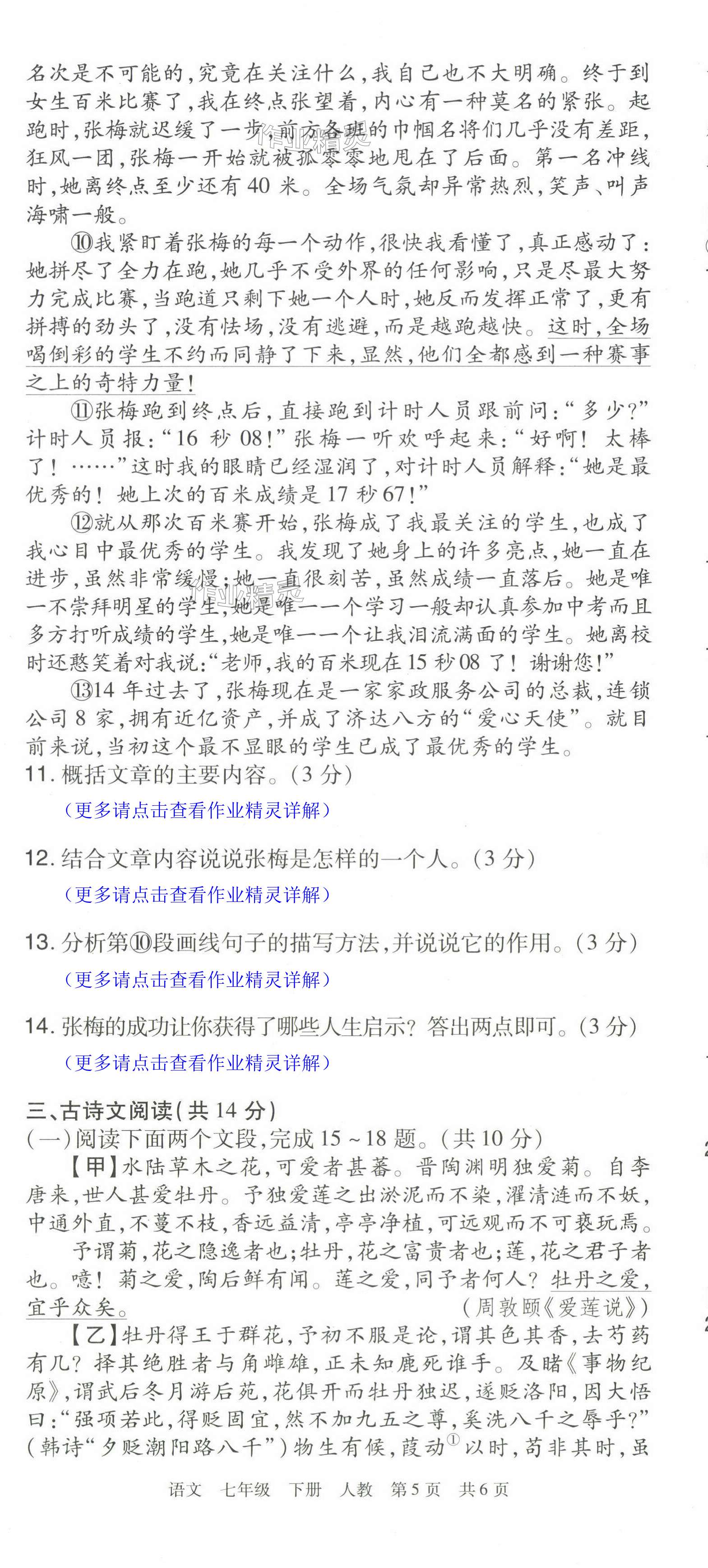 注:目前有些书本章节名称可能整理的还不是很完善,但都是按照顺序排列的,请同学们按照顺序仔细查找。练习册 2024年期末考试必刷卷七年级语文下册人教版洛阳专版 答案主要是用来给同学们做完题方便对答案用的,请勿直接抄袭。