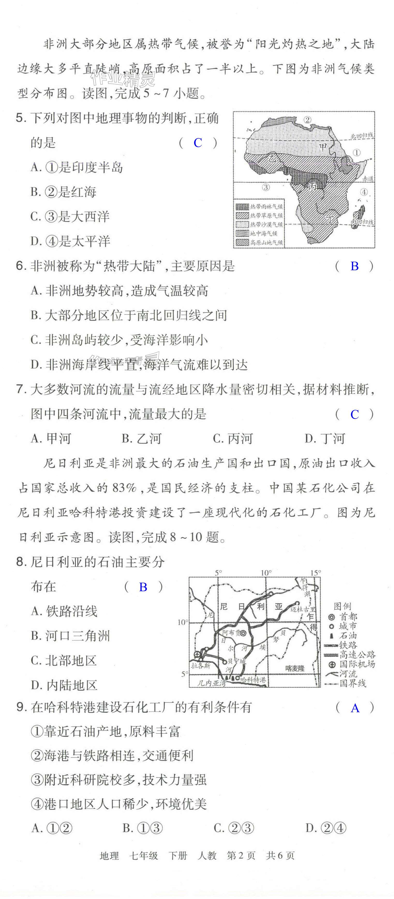 注:目前有些书本章节名称可能整理的还不是很完善,但都是按照顺序排列的,请同学们按照顺序仔细查找。练习册 2024年期末考试必刷卷七年级地理下册人教版洛阳专版 答案主要是用来给同学们做完题方便对答案用的,请勿直接抄袭。