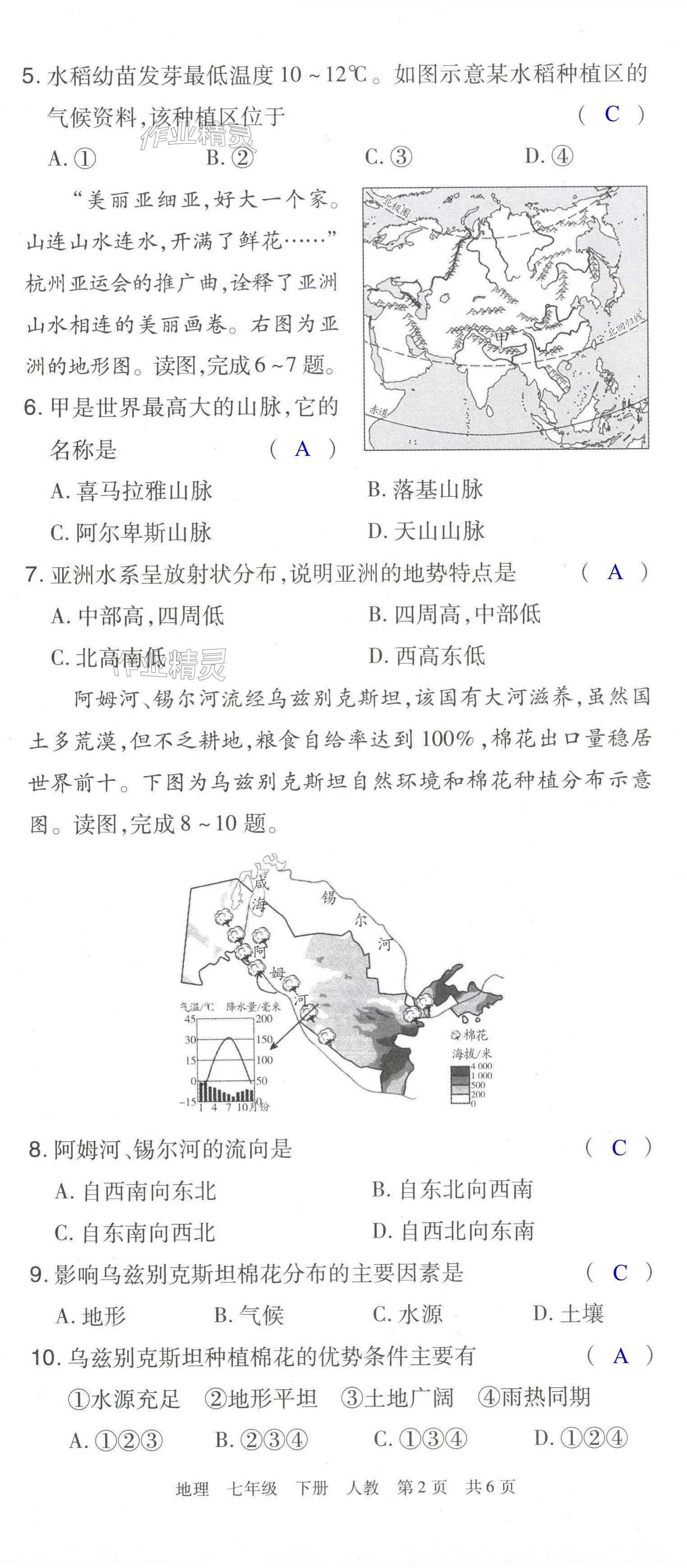 注:目前有些书本章节名称可能整理的还不是很完善,但都是按照顺序排列的,请同学们按照顺序仔细查找。练习册 2024年期末考试必刷卷七年级地理下册人教版洛阳专版 答案主要是用来给同学们做完题方便对答案用的,请勿直接抄袭。