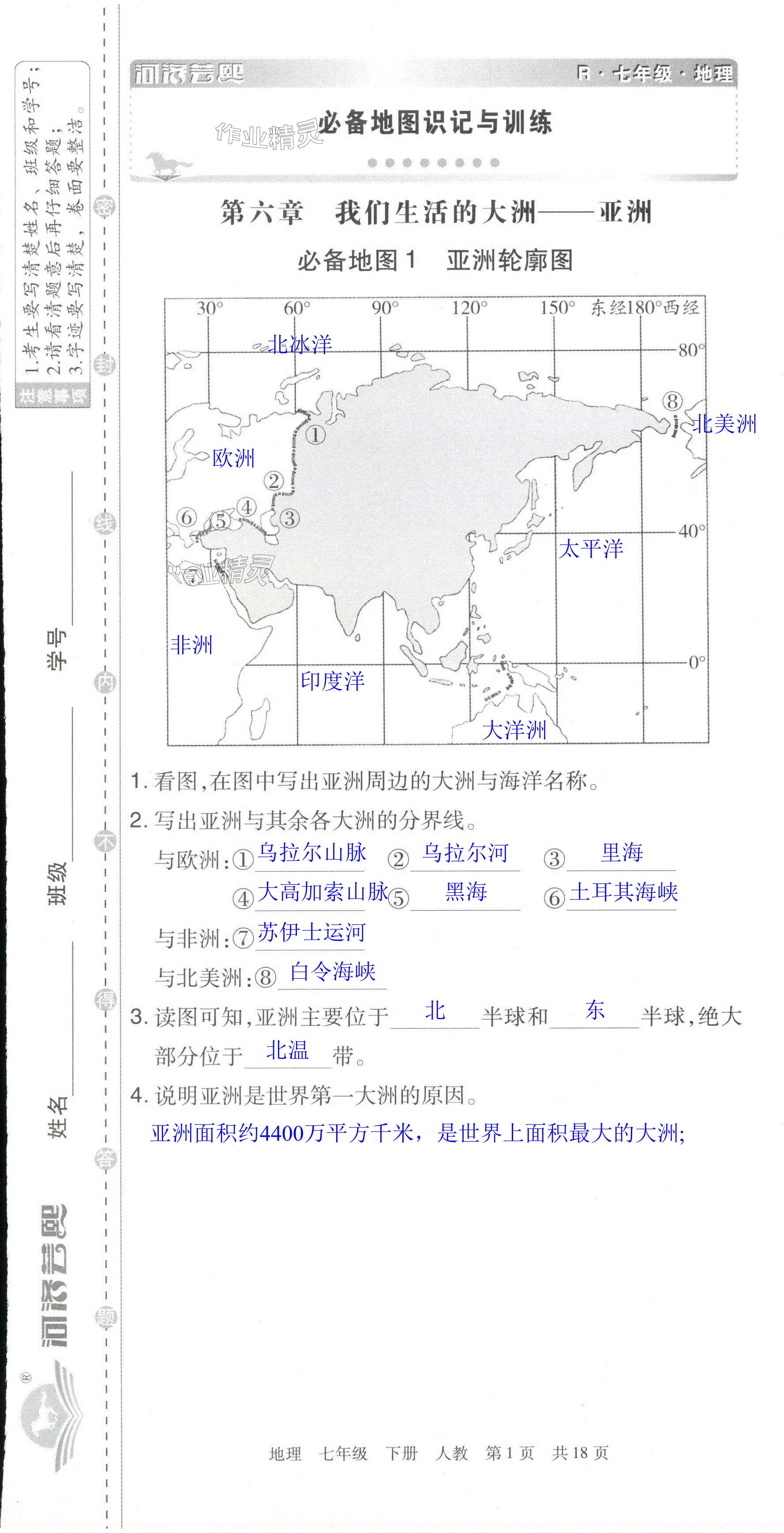 注:目前有些书本章节名称可能整理的还不是很完善,但都是按照顺序排列的,请同学们按照顺序仔细查找。练习册 2024年期末考试必刷卷七年级地理下册人教版洛阳专版 答案主要是用来给同学们做完题方便对答案用的,请勿直接抄袭。