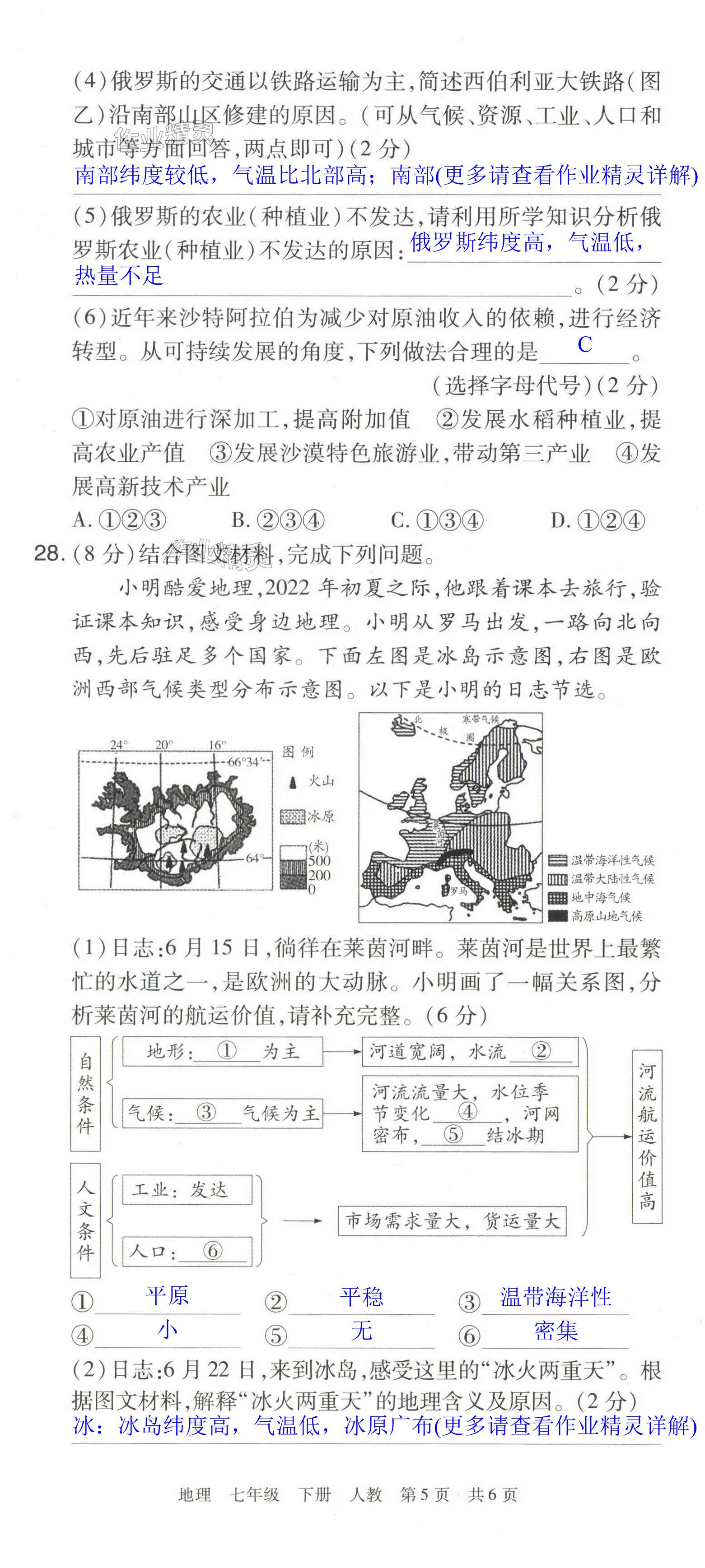 注:目前有些书本章节名称可能整理的还不是很完善,但都是按照顺序排列的,请同学们按照顺序仔细查找。练习册 2024年期末考试必刷卷七年级地理下册人教版洛阳专版 答案主要是用来给同学们做完题方便对答案用的,请勿直接抄袭。