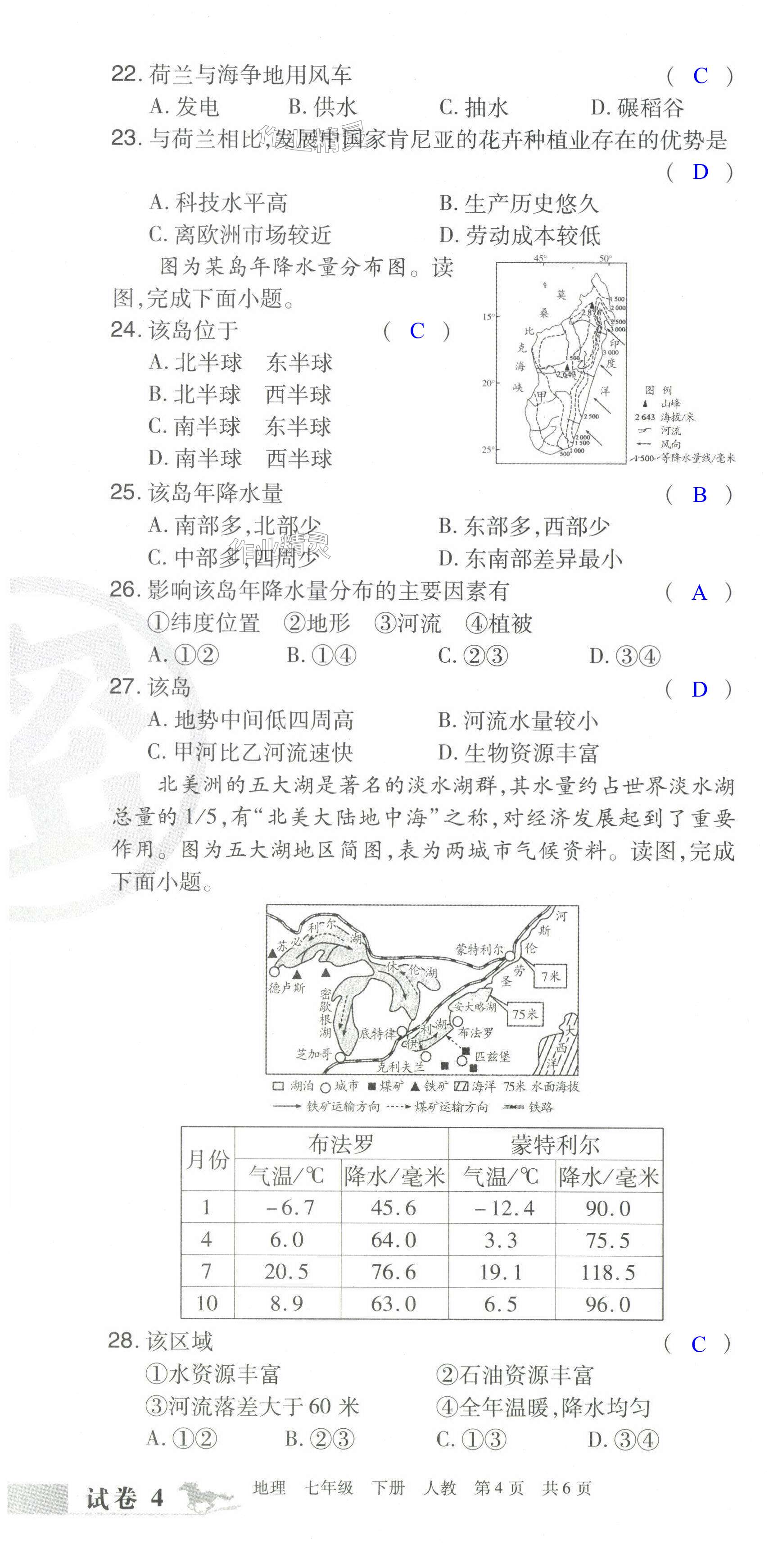 注:目前有些书本章节名称可能整理的还不是很完善,但都是按照顺序排列的,请同学们按照顺序仔细查找。练习册 2024年期末考试必刷卷七年级地理下册人教版洛阳专版 答案主要是用来给同学们做完题方便对答案用的,请勿直接抄袭。