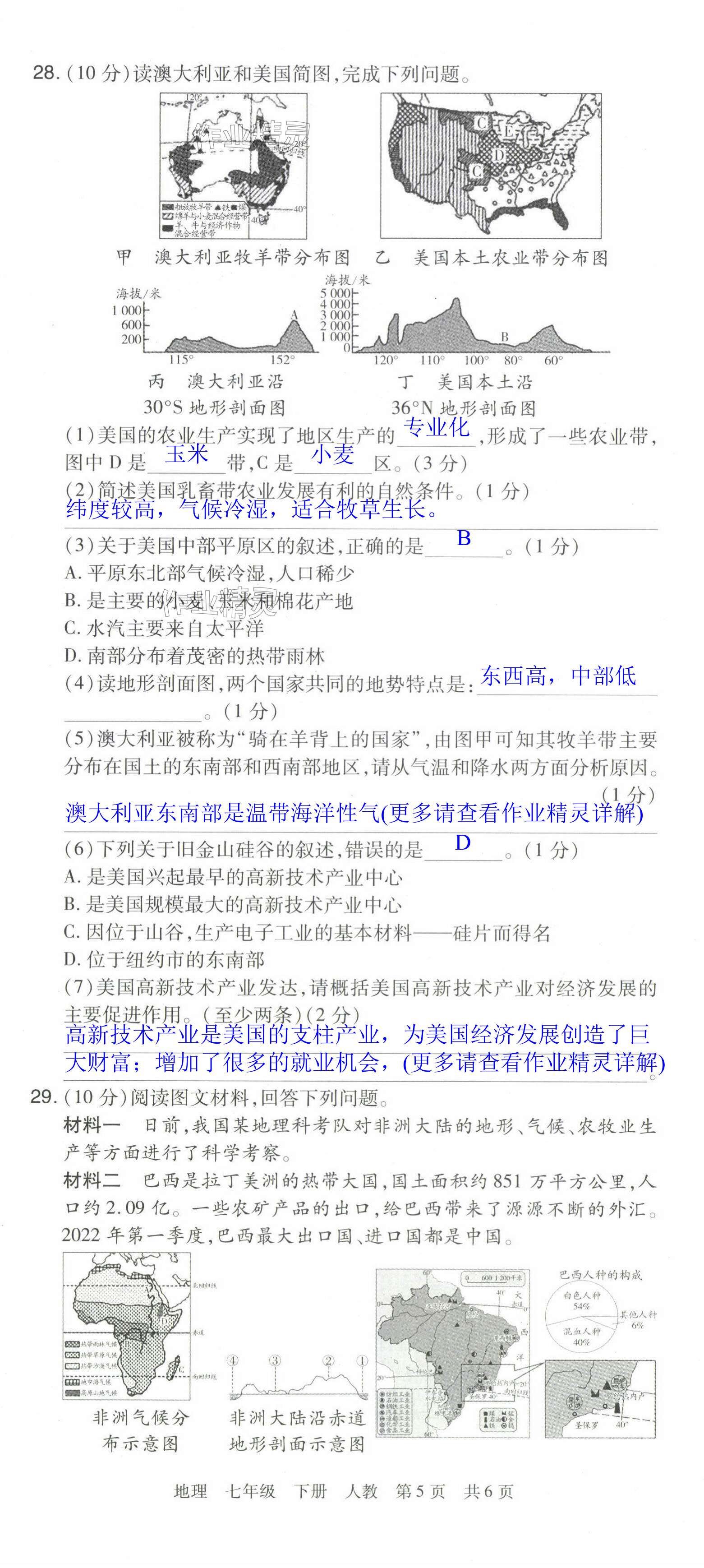 注:目前有些书本章节名称可能整理的还不是很完善,但都是按照顺序排列的,请同学们按照顺序仔细查找。练习册 2024年期末考试必刷卷七年级地理下册人教版洛阳专版 答案主要是用来给同学们做完题方便对答案用的,请勿直接抄袭。