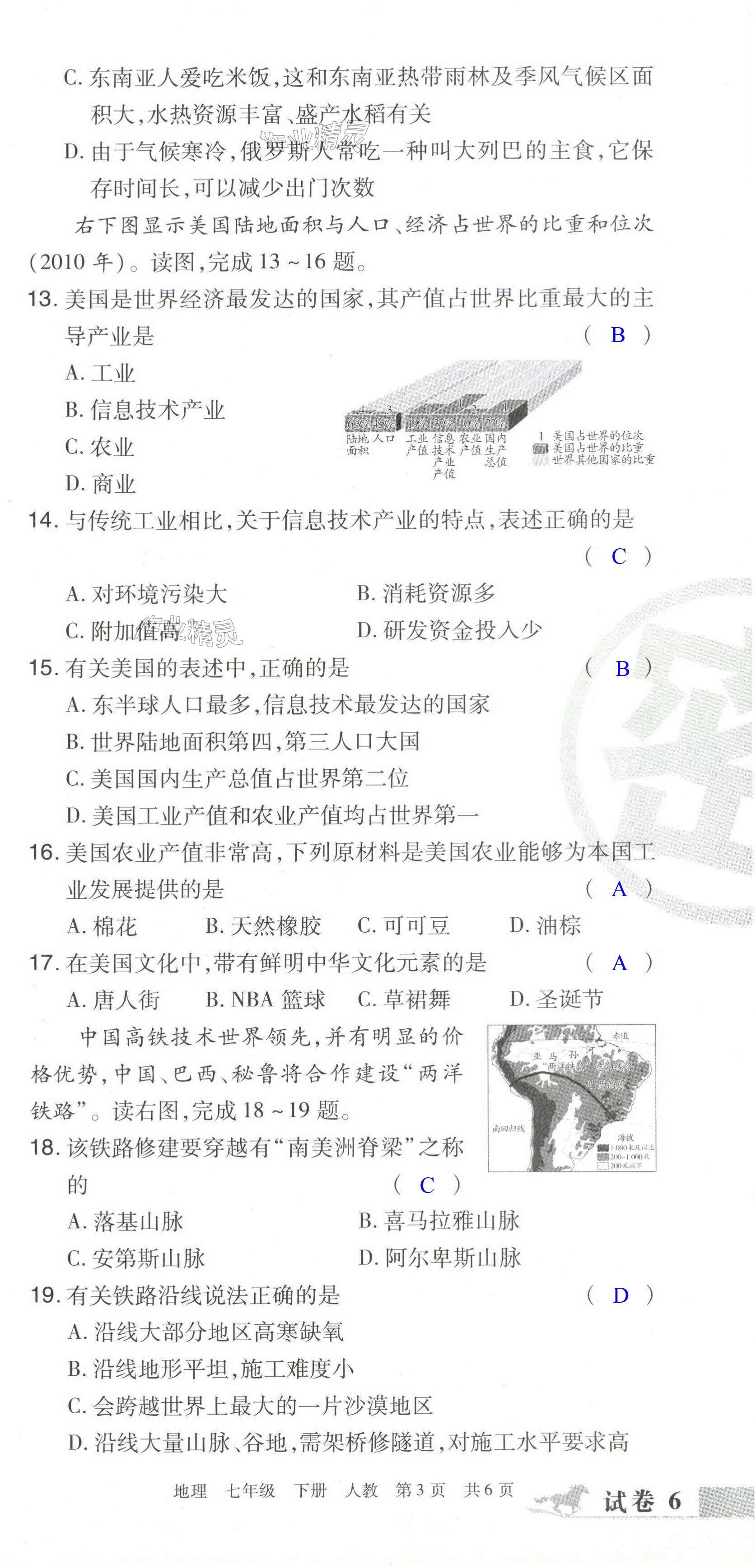 注:目前有些书本章节名称可能整理的还不是很完善,但都是按照顺序排列的,请同学们按照顺序仔细查找。练习册 2024年期末考试必刷卷七年级地理下册人教版洛阳专版 答案主要是用来给同学们做完题方便对答案用的,请勿直接抄袭。