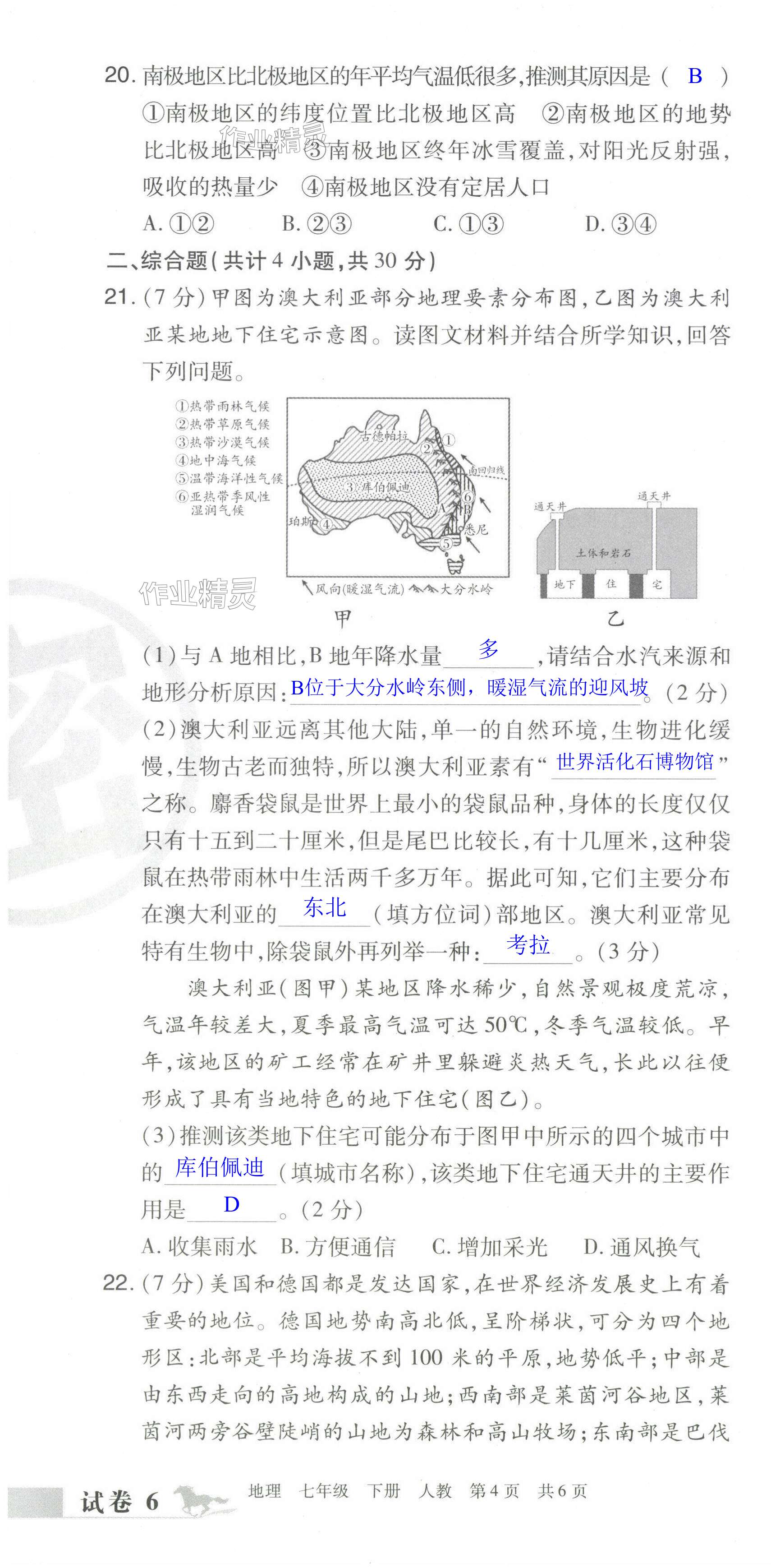注:目前有些书本章节名称可能整理的还不是很完善,但都是按照顺序排列的,请同学们按照顺序仔细查找。练习册 2024年期末考试必刷卷七年级地理下册人教版洛阳专版 答案主要是用来给同学们做完题方便对答案用的,请勿直接抄袭。