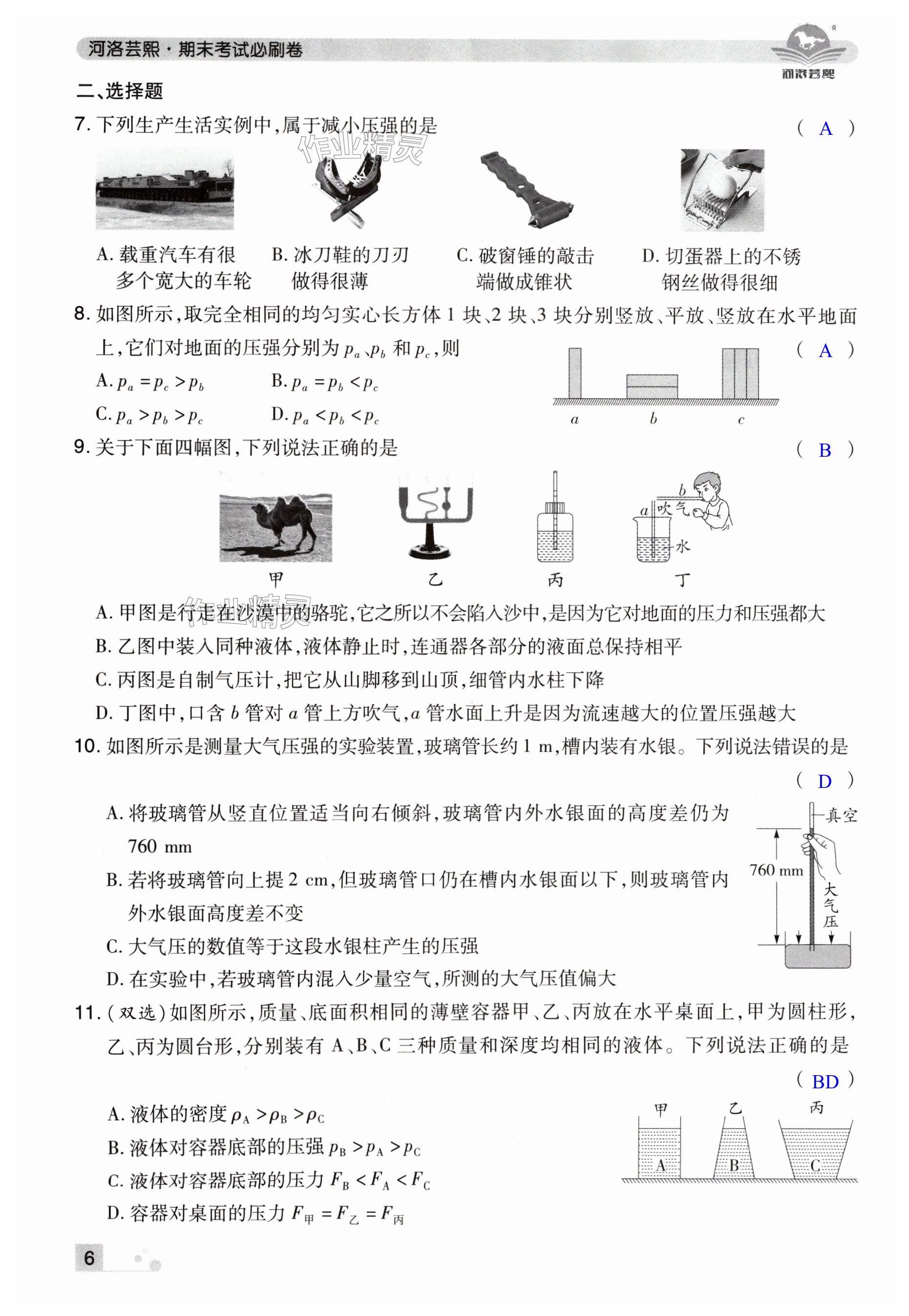 注:目前有些书本章节名称可能整理的还不是很完善,但都是按照顺序排列的,请同学们按照顺序仔细查找。练习册 2024年期末考试必刷卷八年级物理下册人教版河南专版 答案主要是用来给同学们做完题方便对答案用的,请勿直接抄袭。
