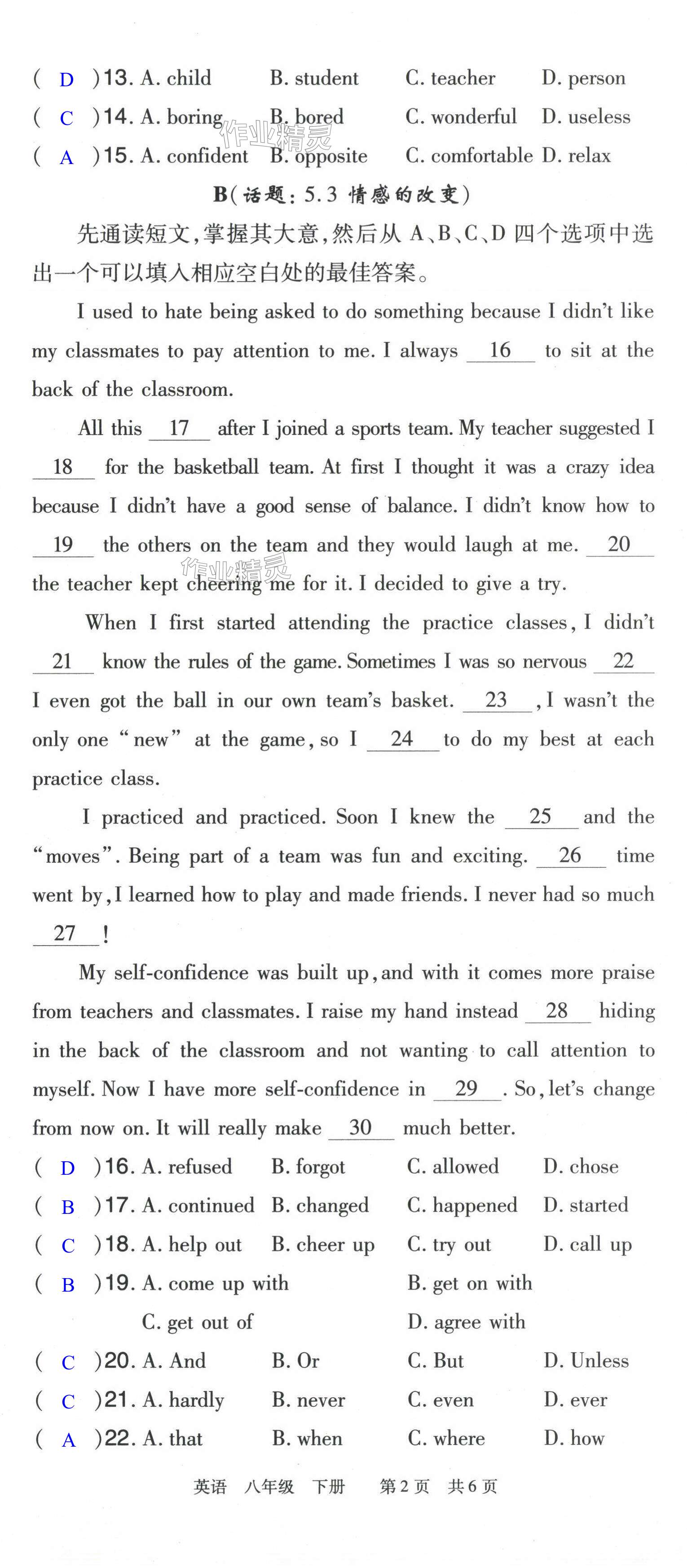 注:目前有些书本章节名称可能整理的还不是很完善,但都是按照顺序排列的,请同学们按照顺序仔细查找。练习册 2024年期末考试必刷卷八年级英语下册仁爱版河南专版 答案主要是用来给同学们做完题方便对答案用的,请勿直接抄袭。