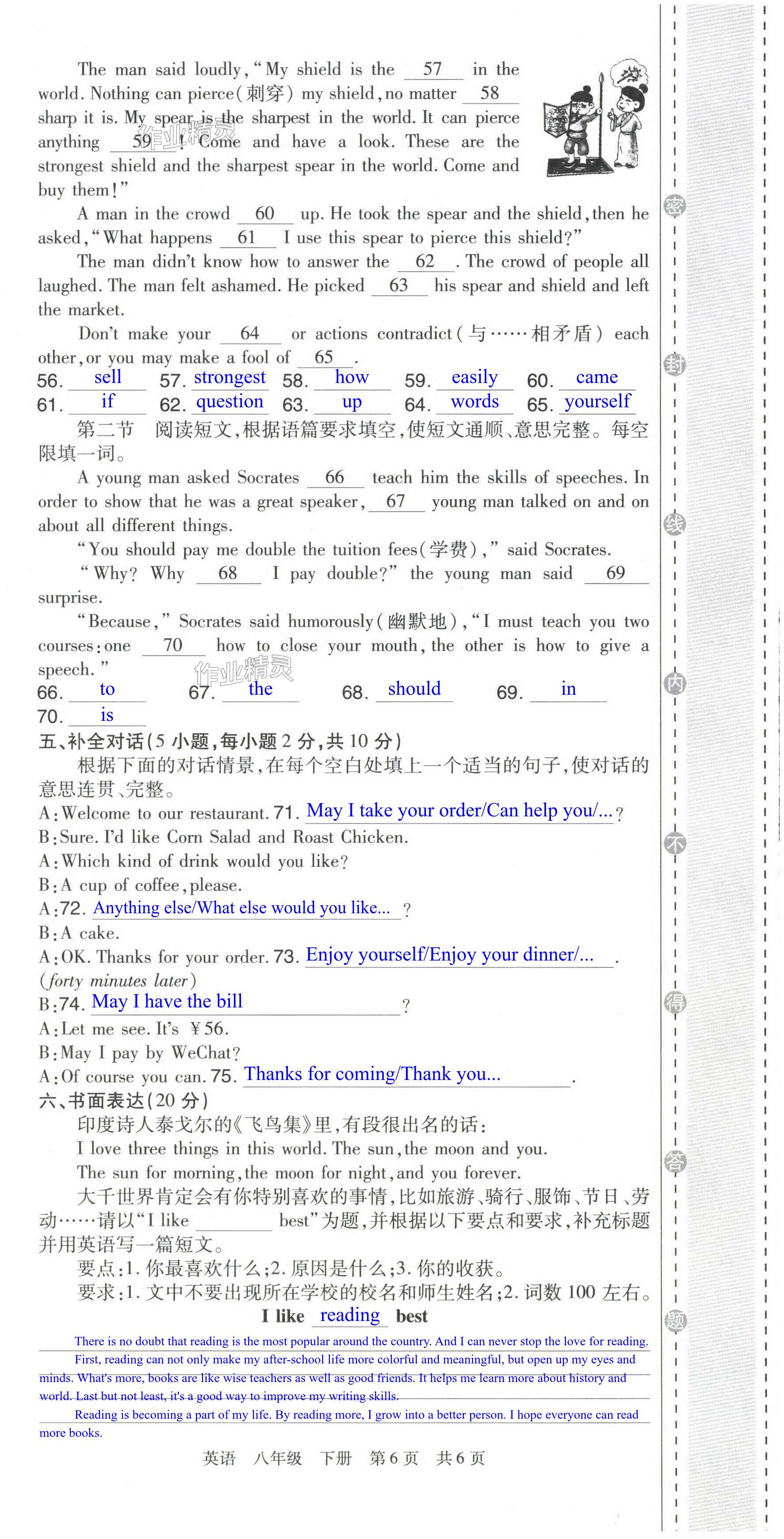 注:目前有些书本章节名称可能整理的还不是很完善,但都是按照顺序排列的,请同学们按照顺序仔细查找。练习册 2024年期末考试必刷卷八年级英语下册仁爱版河南专版 答案主要是用来给同学们做完题方便对答案用的,请勿直接抄袭。