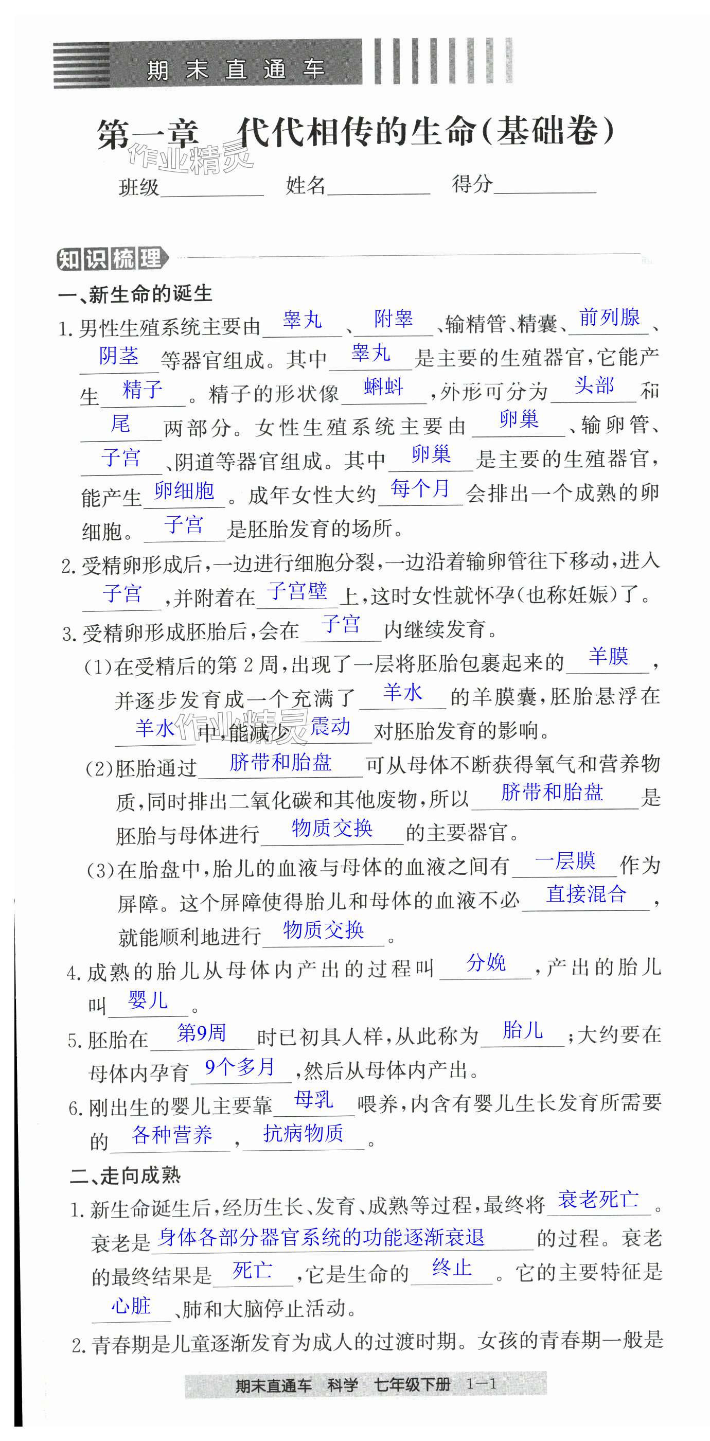 精英家教网> 2024年期末直通车七年级科学下册浙教版 > 第1页 参考答案