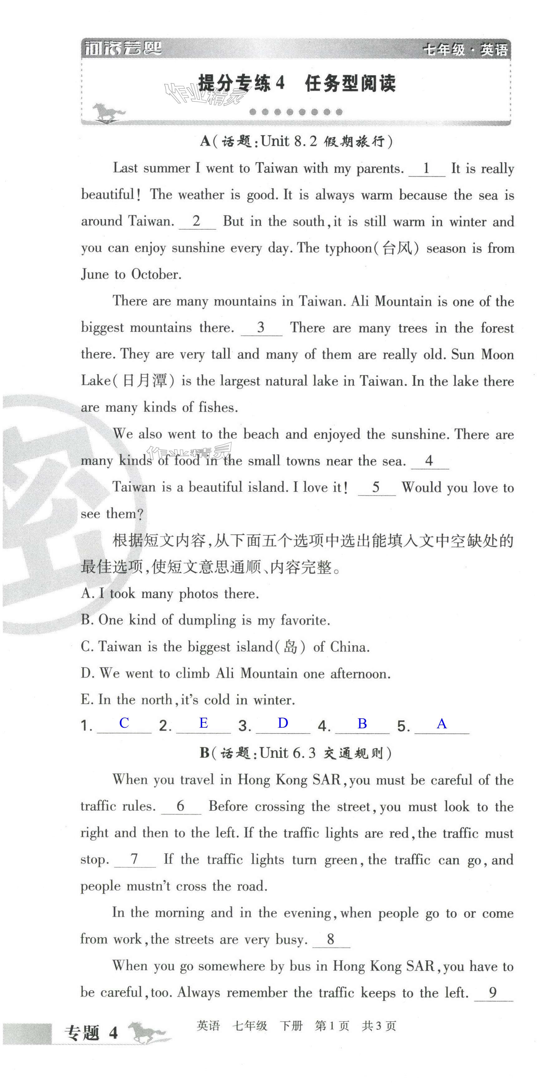注:目前有些书本章节名称可能整理的还不是很完善,但都是按照顺序排列的,请同学们按照顺序仔细查找。练习册 2024年期末考试必刷卷七年级英语下册仁爱版河南专版 答案主要是用来给同学们做完题方便对答案用的,请勿直接抄袭。