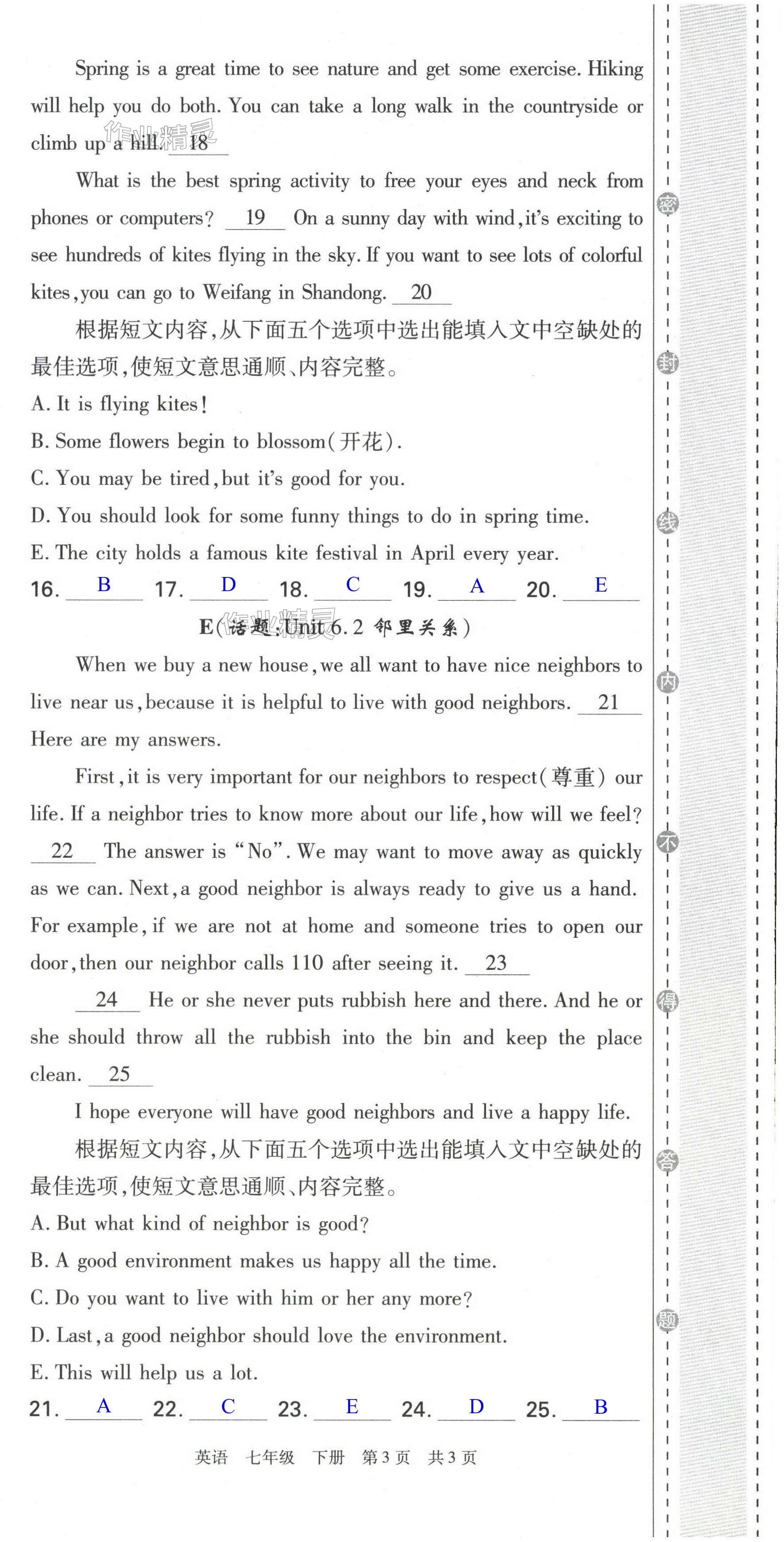 注:目前有些书本章节名称可能整理的还不是很完善,但都是按照顺序排列的,请同学们按照顺序仔细查找。练习册 2024年期末考试必刷卷七年级英语下册仁爱版河南专版 答案主要是用来给同学们做完题方便对答案用的,请勿直接抄袭。