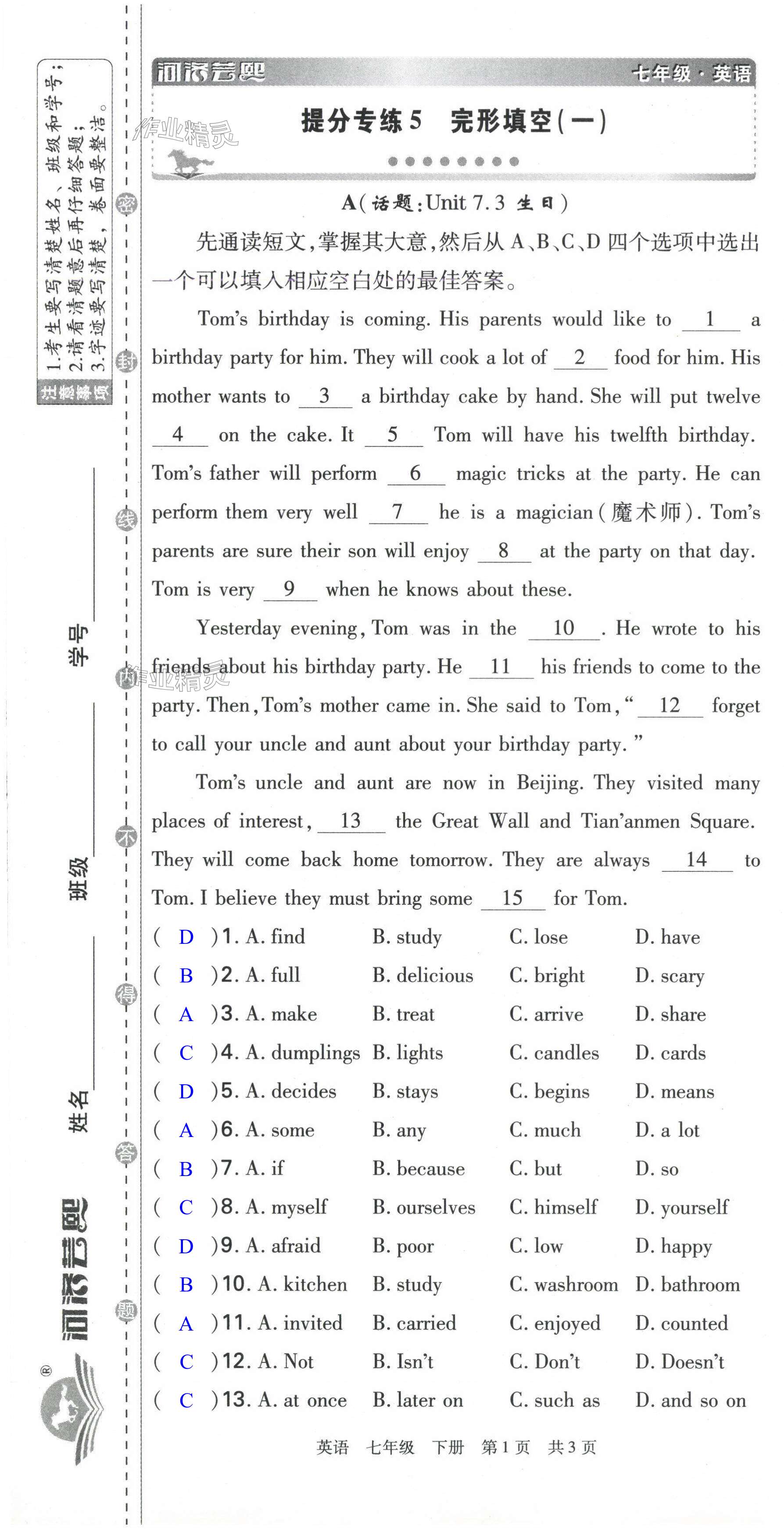 注:目前有些书本章节名称可能整理的还不是很完善,但都是按照顺序排列的,请同学们按照顺序仔细查找。练习册 2024年期末考试必刷卷七年级英语下册仁爱版河南专版 答案主要是用来给同学们做完题方便对答案用的,请勿直接抄袭。