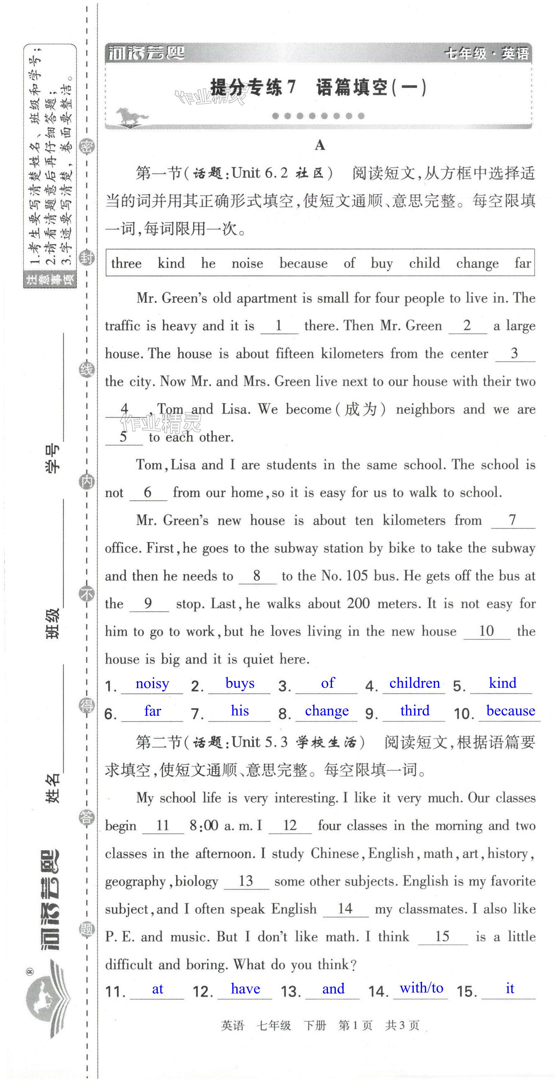 注:目前有些书本章节名称可能整理的还不是很完善,但都是按照顺序排列的,请同学们按照顺序仔细查找。练习册 2024年期末考试必刷卷七年级英语下册仁爱版河南专版 答案主要是用来给同学们做完题方便对答案用的,请勿直接抄袭。