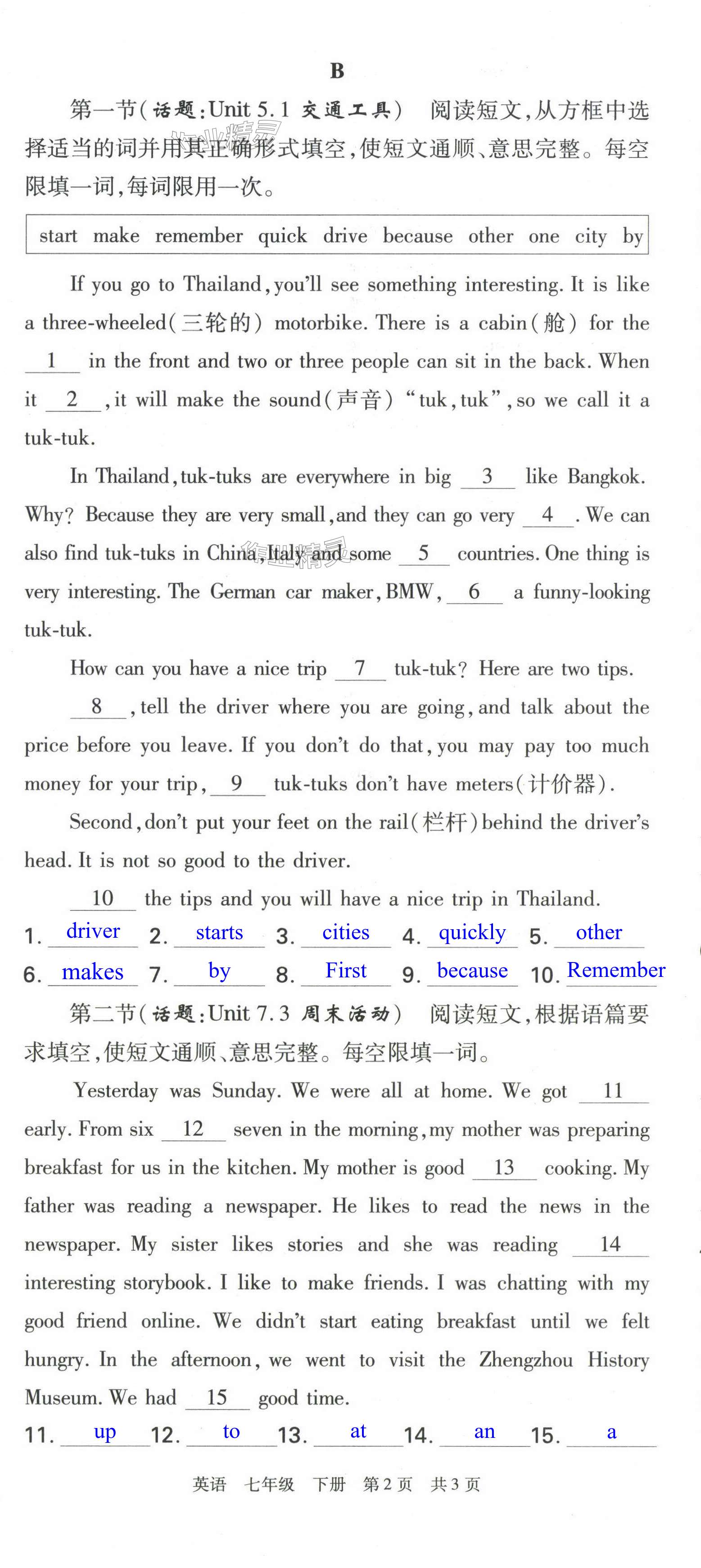 注:目前有些书本章节名称可能整理的还不是很完善,但都是按照顺序排列的,请同学们按照顺序仔细查找。练习册 2024年期末考试必刷卷七年级英语下册仁爱版河南专版 答案主要是用来给同学们做完题方便对答案用的,请勿直接抄袭。