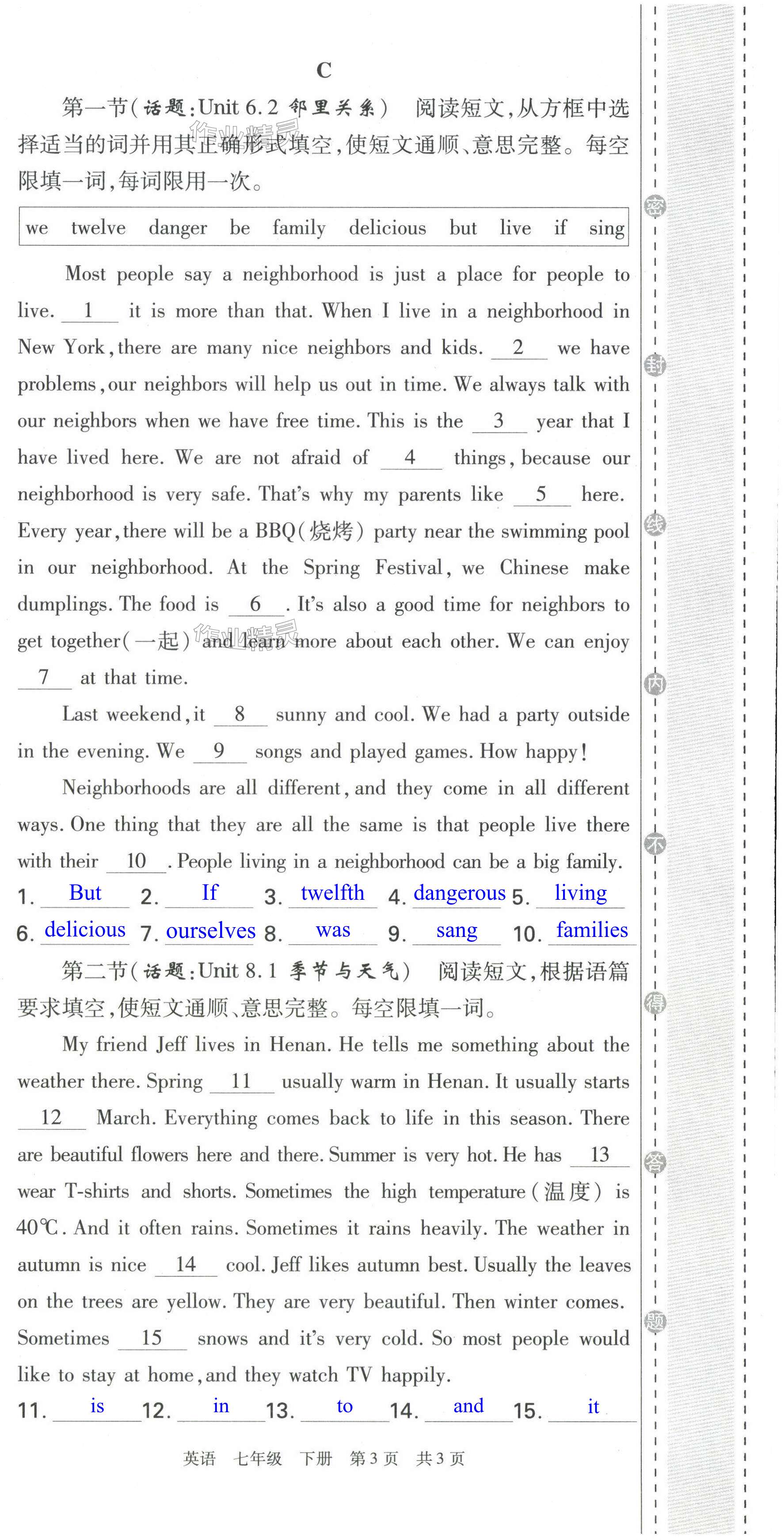注:目前有些书本章节名称可能整理的还不是很完善,但都是按照顺序排列的,请同学们按照顺序仔细查找。练习册 2024年期末考试必刷卷七年级英语下册仁爱版河南专版 答案主要是用来给同学们做完题方便对答案用的,请勿直接抄袭。