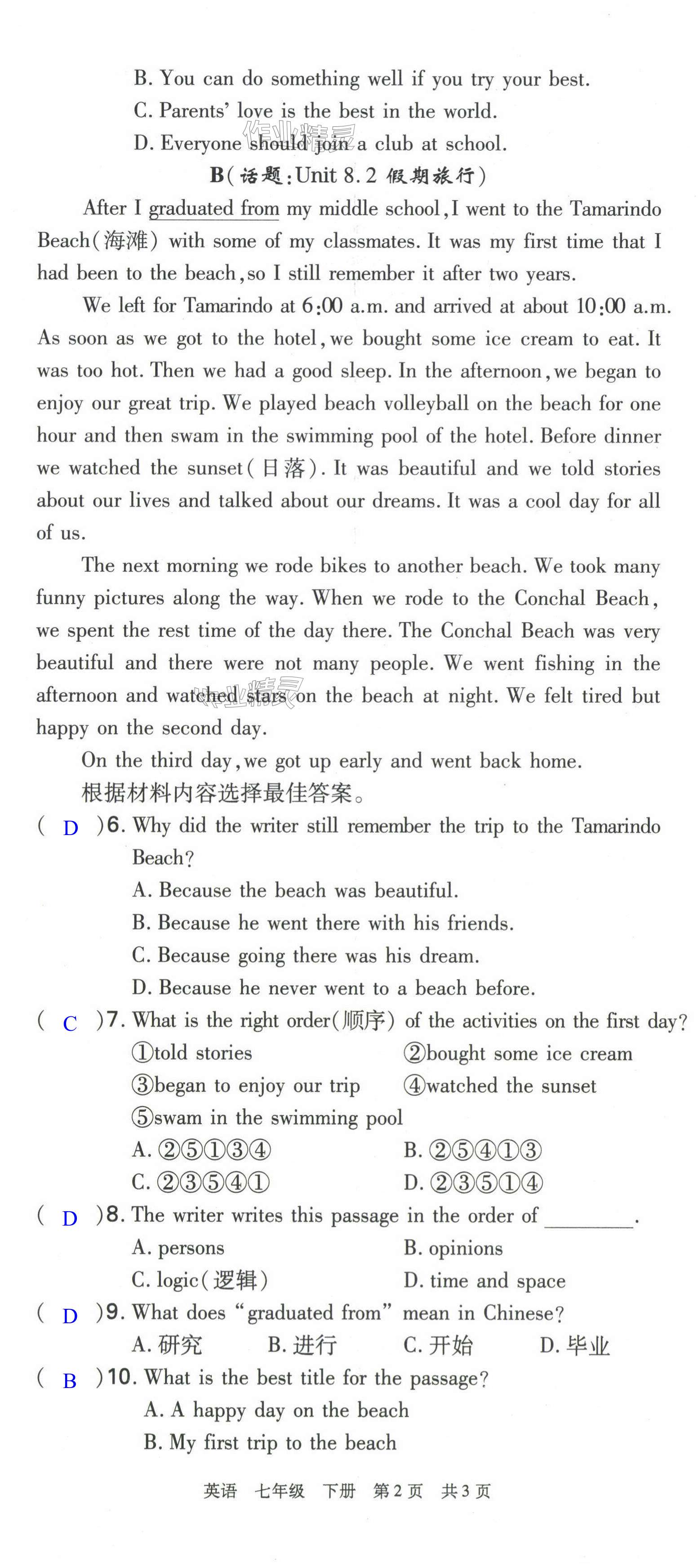 注:目前有些书本章节名称可能整理的还不是很完善,但都是按照顺序排列的,请同学们按照顺序仔细查找。练习册 2024年期末考试必刷卷七年级英语下册仁爱版河南专版 答案主要是用来给同学们做完题方便对答案用的,请勿直接抄袭。