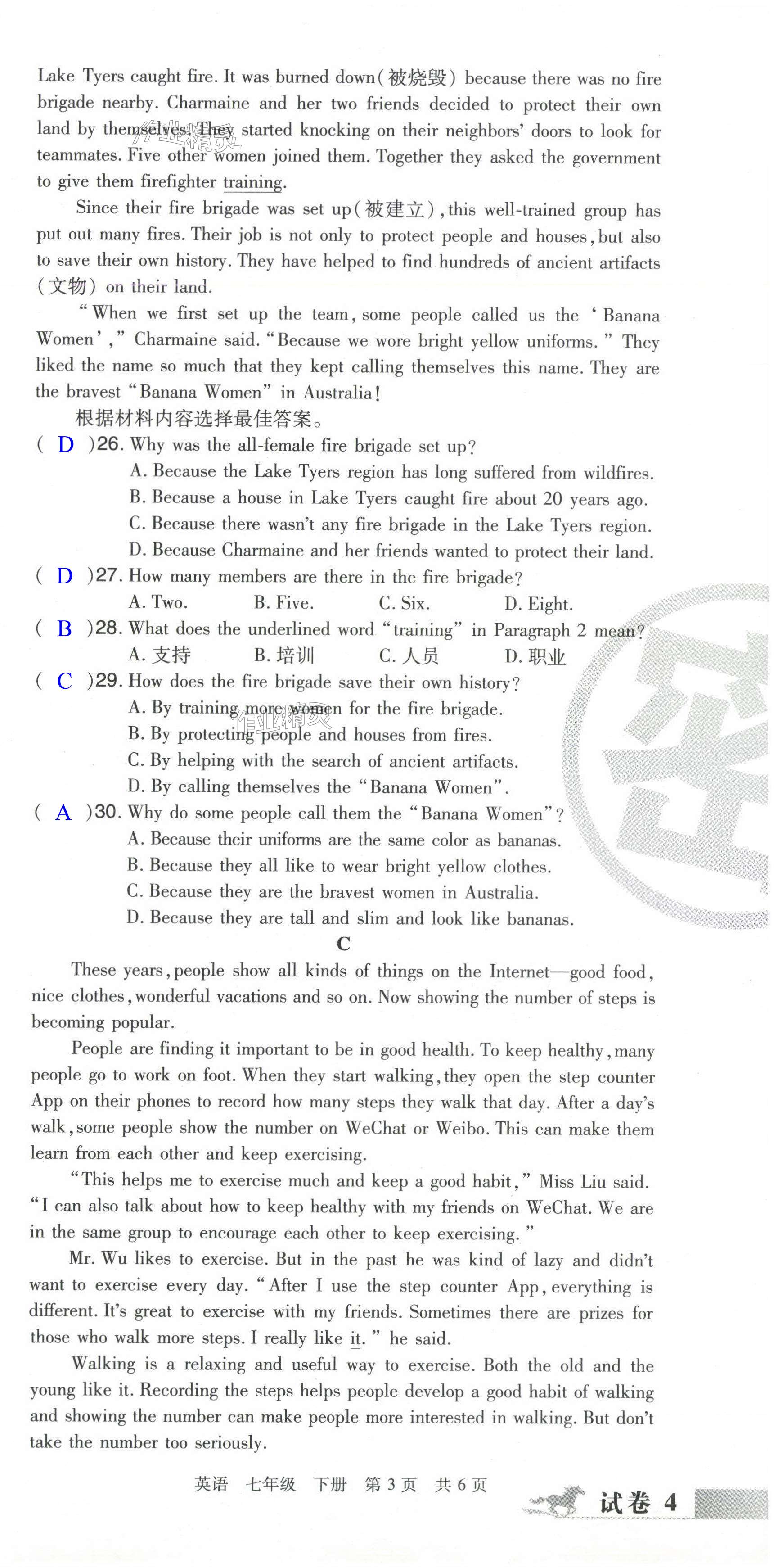 注:目前有些书本章节名称可能整理的还不是很完善,但都是按照顺序排列的,请同学们按照顺序仔细查找。练习册 2024年期末考试必刷卷七年级英语下册仁爱版河南专版 答案主要是用来给同学们做完题方便对答案用的,请勿直接抄袭。