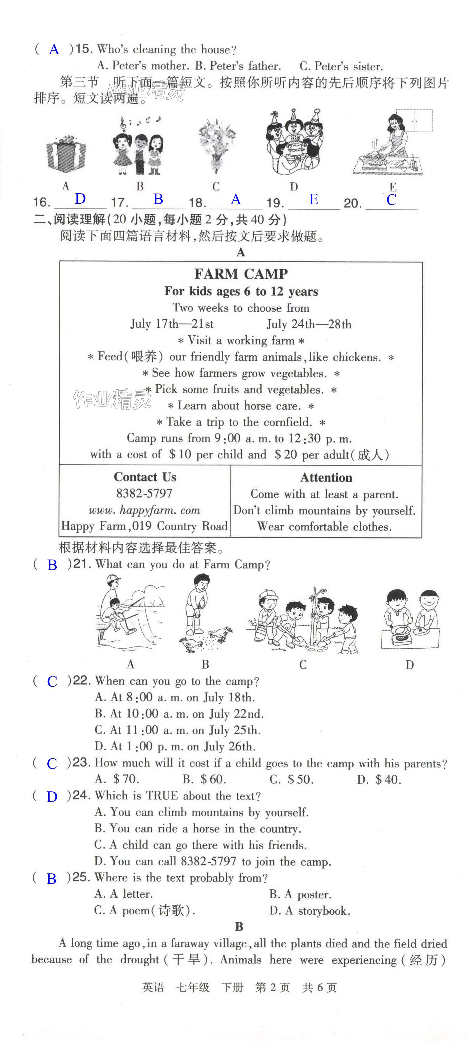 注:目前有些书本章节名称可能整理的还不是很完善,但都是按照顺序排列的,请同学们按照顺序仔细查找。练习册 2024年期末考试必刷卷七年级英语下册仁爱版河南专版 答案主要是用来给同学们做完题方便对答案用的,请勿直接抄袭。