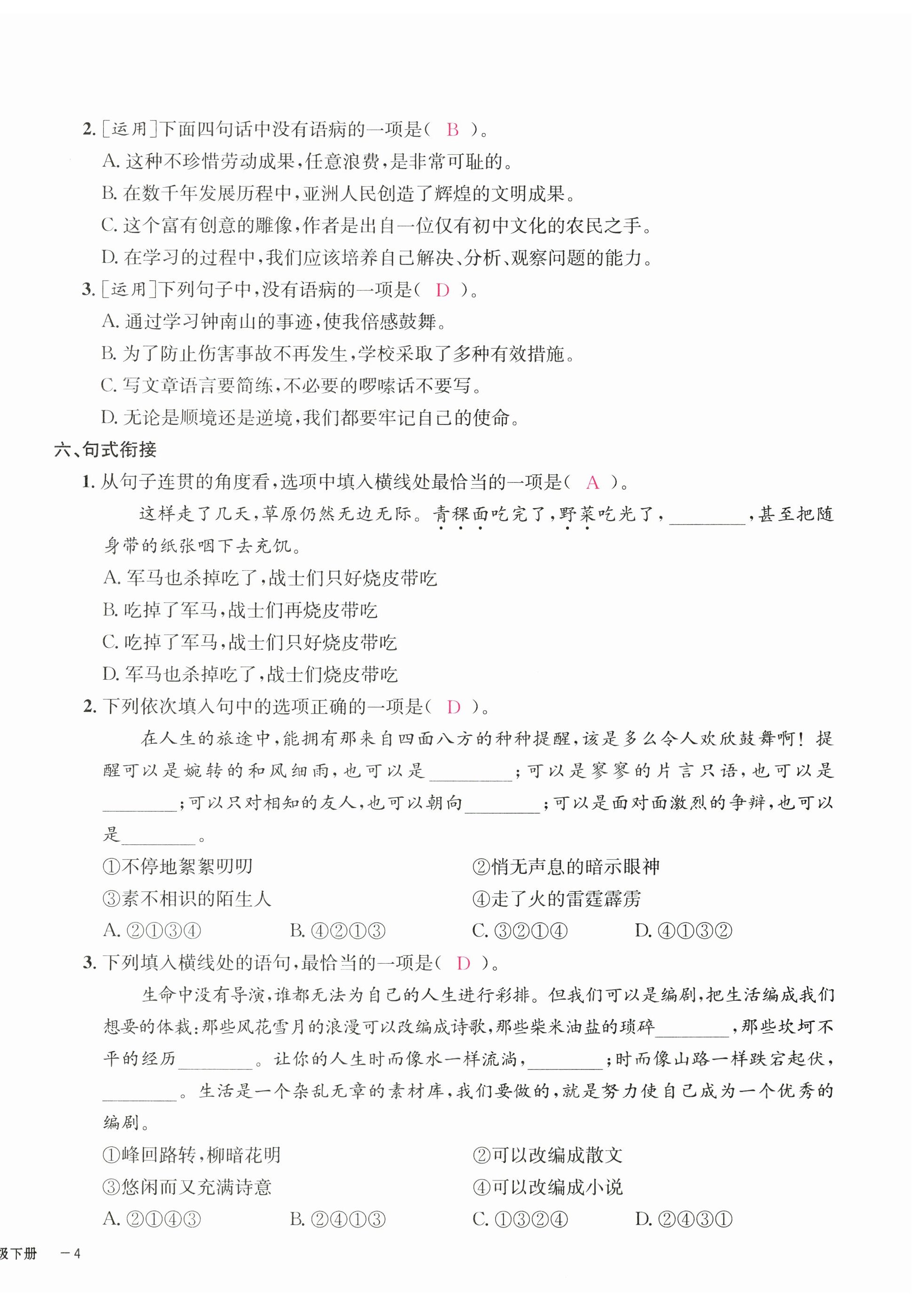 注:目前有些书本章节名称可能整理的还不是很完善,但都是按照顺序排列的,请同学们按照顺序仔细查找。练习册 2024年浙江各地期末迎考卷六年级语文下册人教版 答案主要是用来给同学们做完题方便对答案用的,请勿直接抄袭。